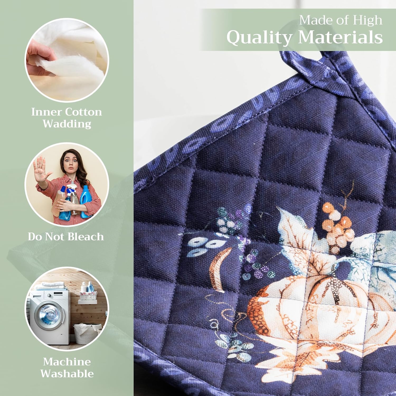 Maison d' Hermine Pot Holders 100% Cotton Heat Resistant Potholders 8" x 8" Hot Pads with Loop BBQ, Cooking, Baking, Grilling, Kitchen, Handling Hot Pans (Pack of 1, Pumpkin Blues)