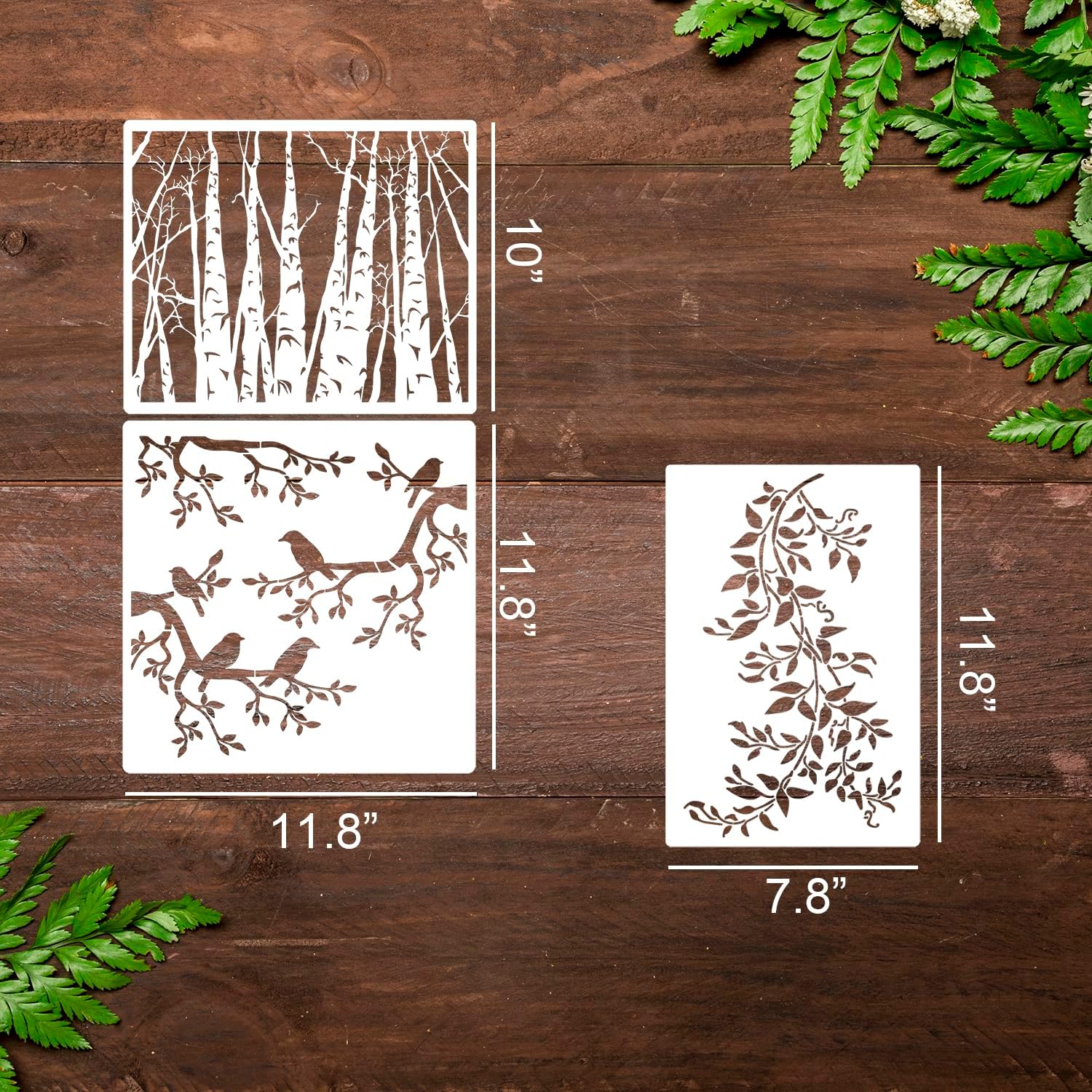 Tree Stencils for Painting on Wood Leaf Vine Stencil Large Bird Branch Stencils for Crafts Reusable for Wall Furniture Canvas Decor
