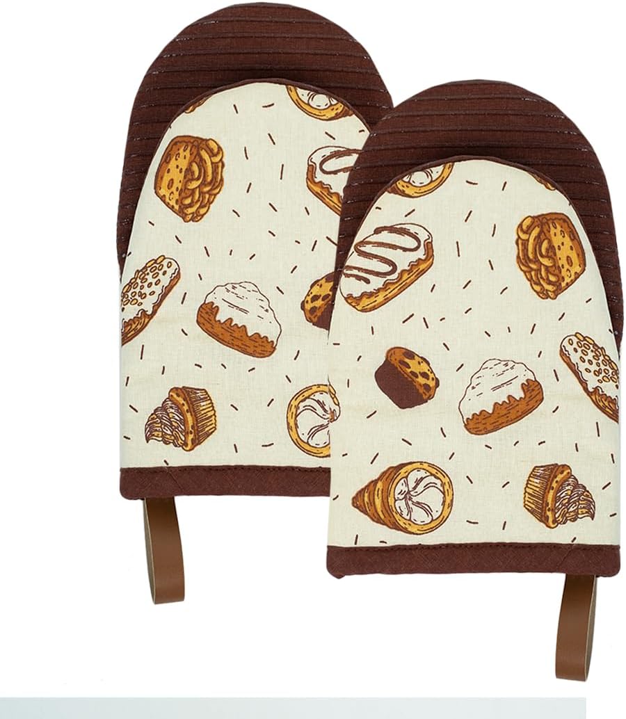- [ NON-SLIP GRIP ] - The mini oven mitt or apartment essentials are crafted in pure cotton with a silicon layering that gives a robust grip. These cute oven mitts or brown oven mits come with a secure non-slip grip while handling pots and pans. They also act as the perfect baking supplies.