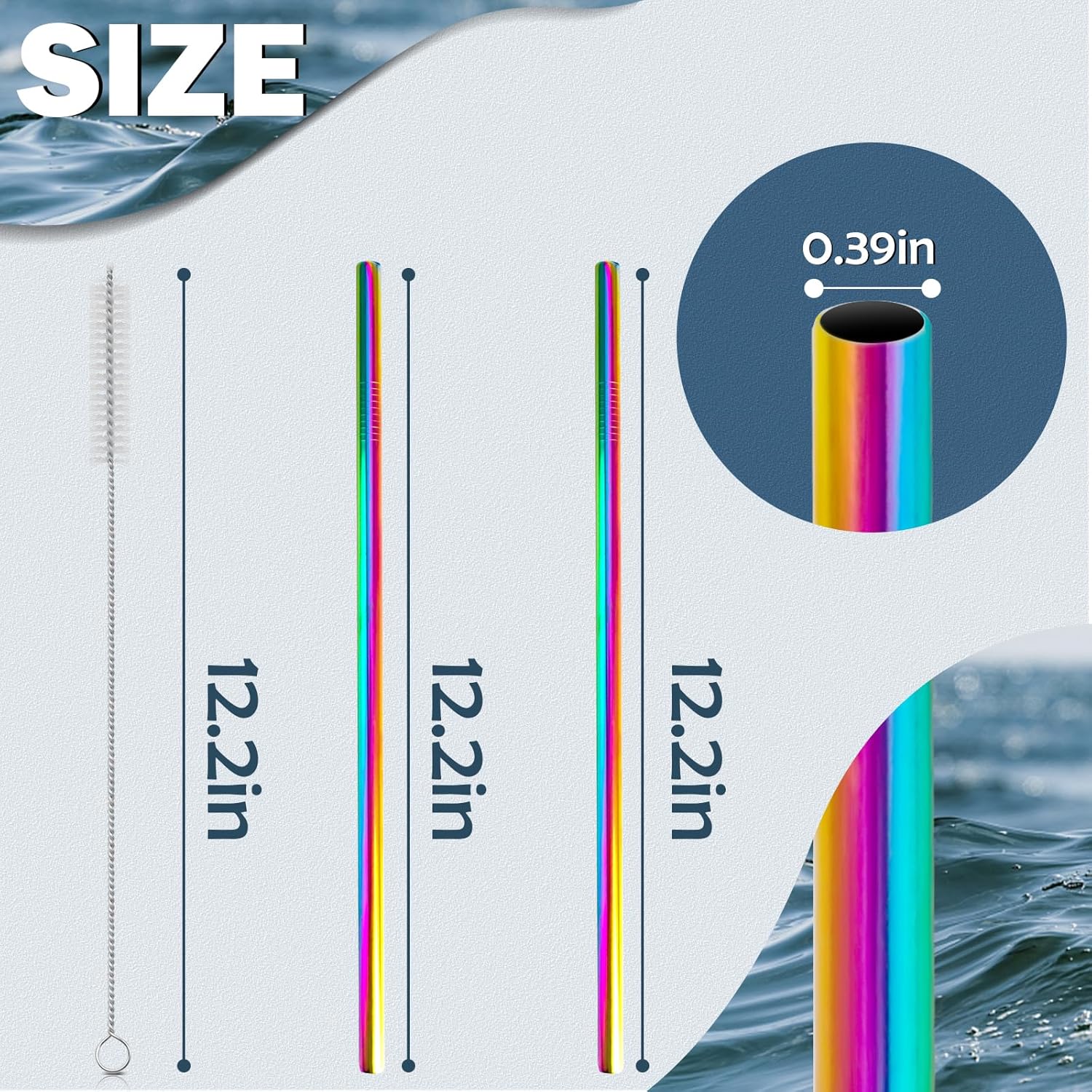 for Stanley Quencher 40oz Tumbler 6x Metal Stainless Steel Straws, 12inch Replacement Extra Long/Tall Straws for Stanley Cup 40oz Drinking Reusable Accessories (6x Straight,10mm Colorful)