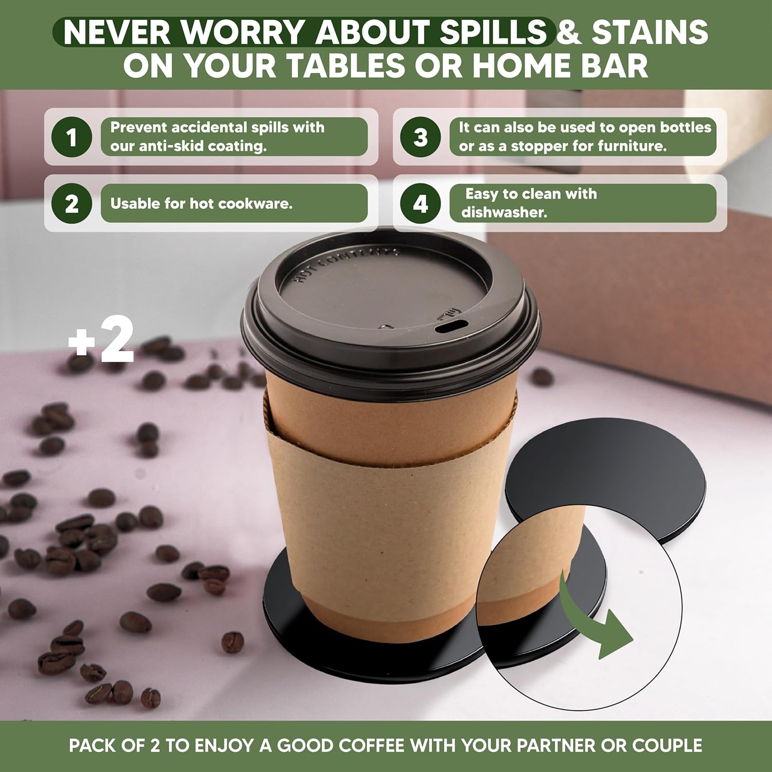 - 🏆 PROTECT YOUR SURFACES WITH OUR PREMIUM SILICONE COASTERS: The included silicone coasters guard your tables and countertops from heat, spills, and scratches—while adding a clean, modern touch to your coffee bar. They’re easy to clean, non-slip, and make every sip feel just a bit more special.