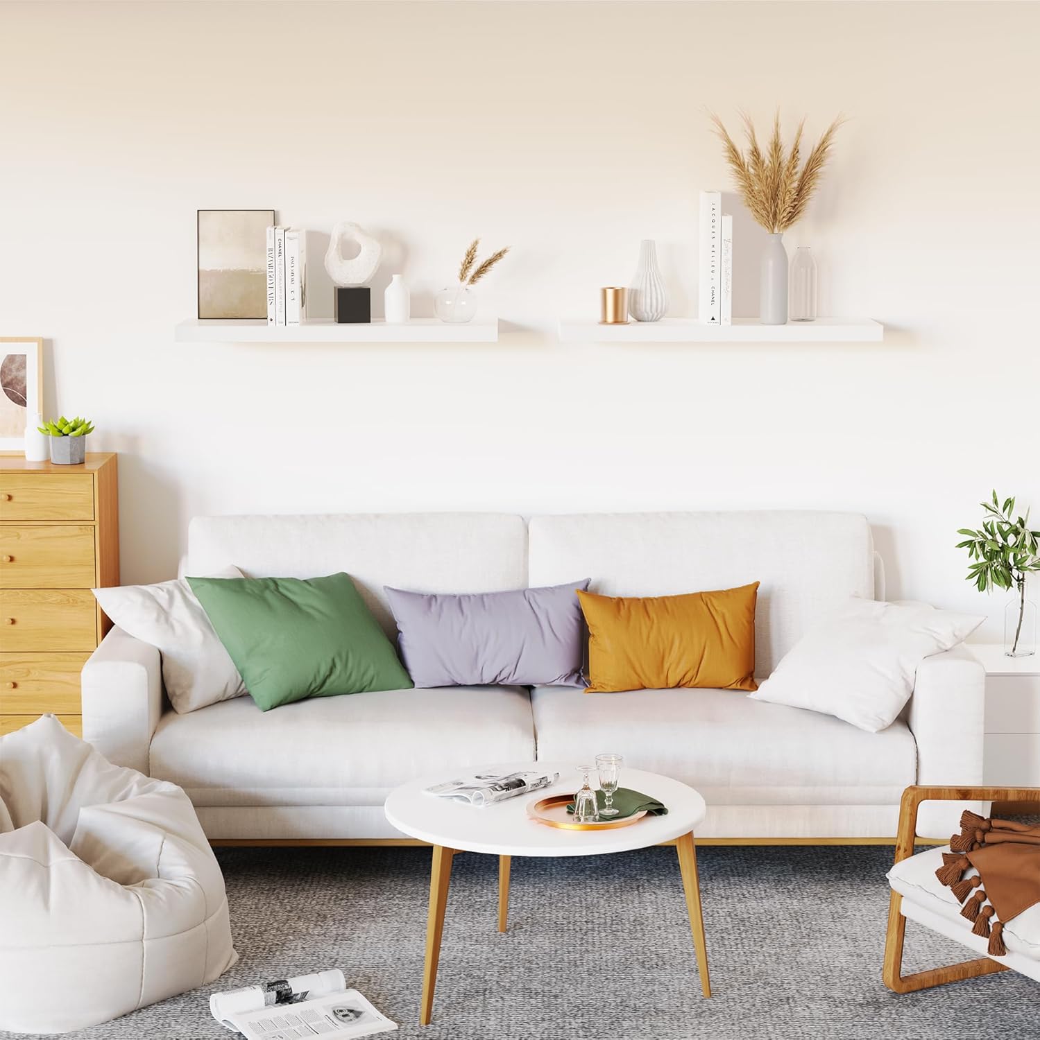 Floating Shelves for Wall, White Wood Wall Shelf Set of 2, 24" Wall Mounted Floating Shelf for Kitchen, Living Room, Bedroom, Bathroom Storage, Book Shelf for Walls Home Decor, Frame Display