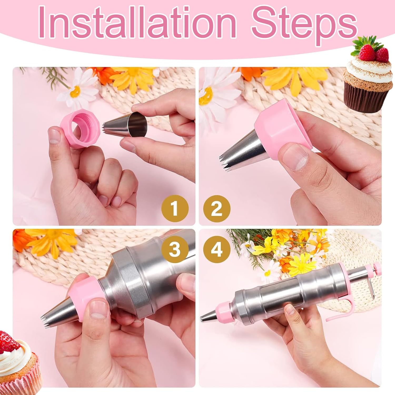 - 【19-Piece Complete Decorating Set】 This cake decorating kit includes 1 frosting gun, 6 stainless steel piping tips, 2 couplers, 8 BPA-free silicone cups, and 2 cleaning brushes. Perfect for cupcake decorating, cake frosting, and cookie designs, it’s a must-have for baking supplies enthusiasts.