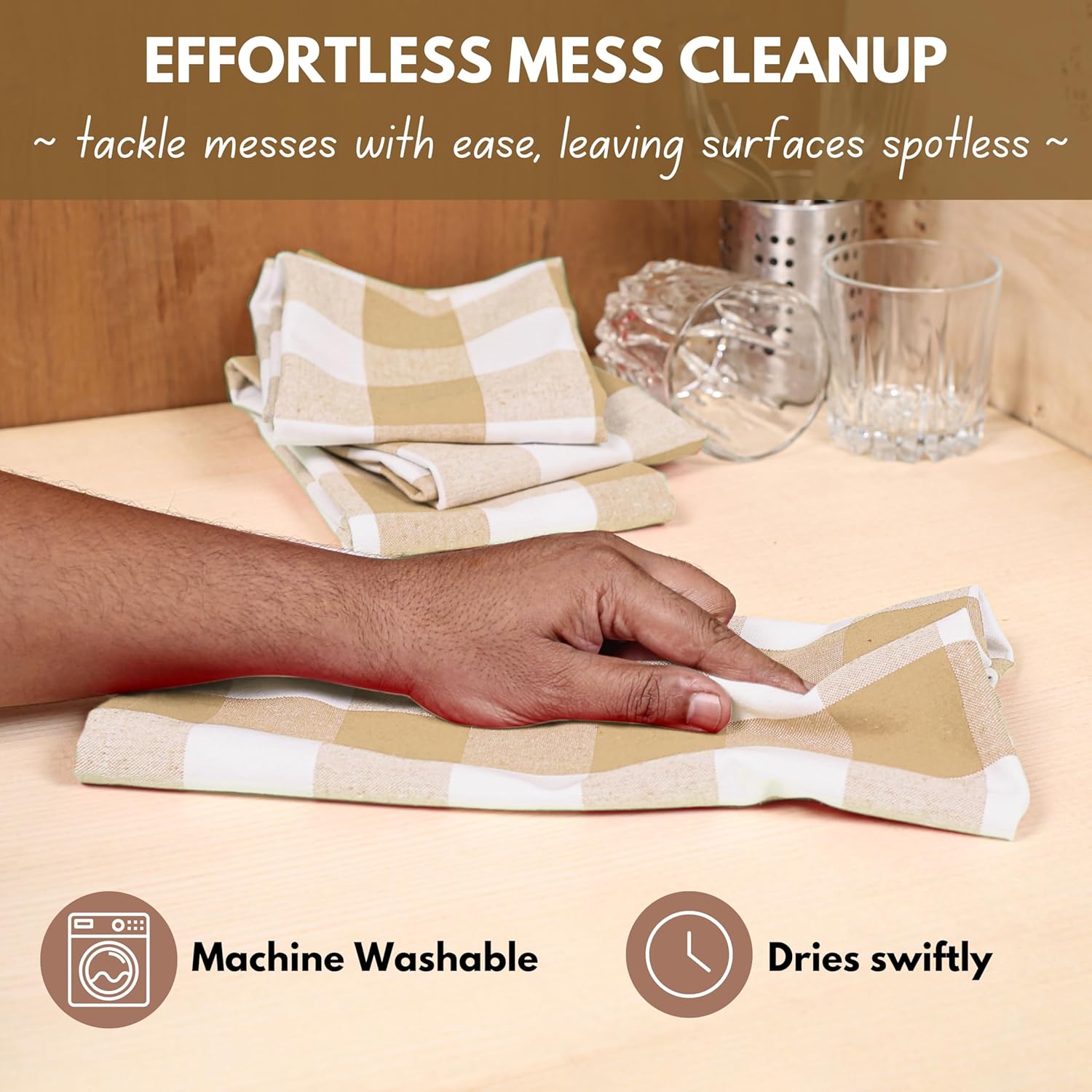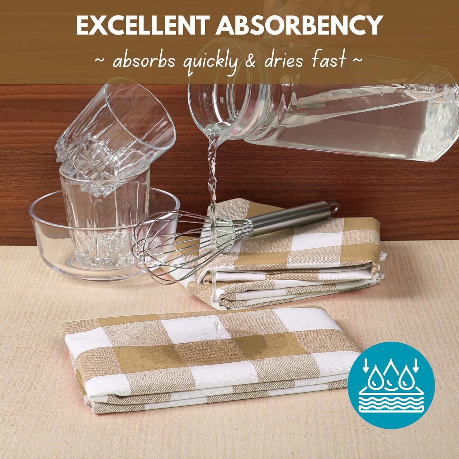 Native Fab 6 Pack Buffalo Check Kitchen Towels16 x26 - Cotton Dish Towels Washable - Absorbent Tea Towels, Soft Hand Towel with Hanging Loop, Dish Cloth Set - Beige White