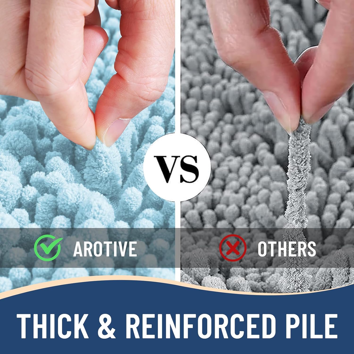 - Anti-Skid Backing: Arotive chenille bathroom rugs feature a non-slip bottom consisting of sturdy mesh PVC material that stops the bath mat from shifting and skidding. The middle layer is 4 mm memory foam, which can let you feel more comfortable when wrapping into the rugs. WARNING: Place bath mat on CLEAN DRY FLAT FLOOR ONLY. Water under bath rug can cause it to slip. Always keep the bottom of bath rug dry