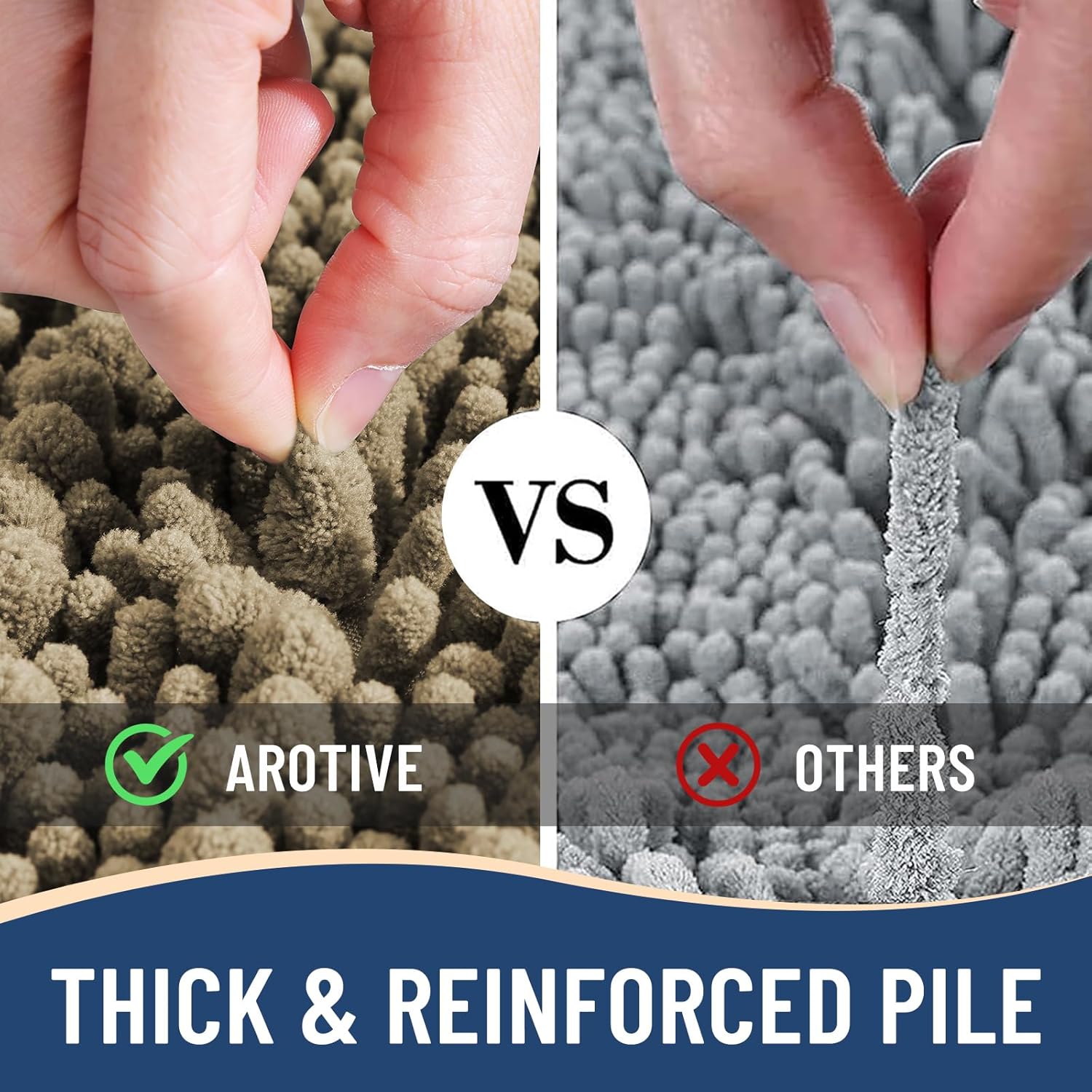 - Anti-Skid Backing: Arotive chenille bathroom rugs feature a non-slip bottom consisting of sturdy mesh PVC material that stops the bath mat from shifting and skidding. The middle layer is 4 mm memory foam, which can let you feel more comfortable when wrapping into the rugs. WARNING: Place bath mat on CLEAN DRY FLAT FLOOR ONLY. Water under bath rug can cause it to slip. Always keep the bottom of bath rug dry