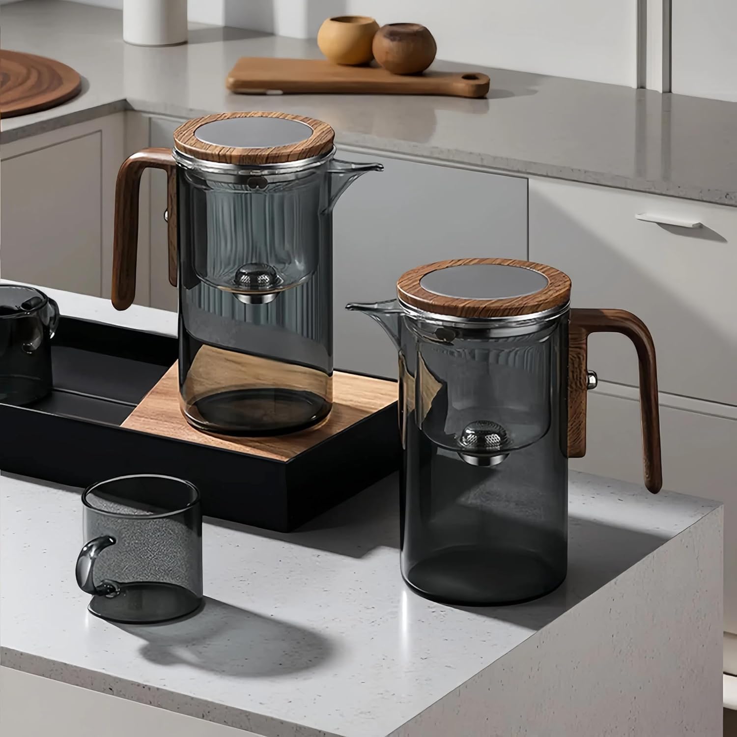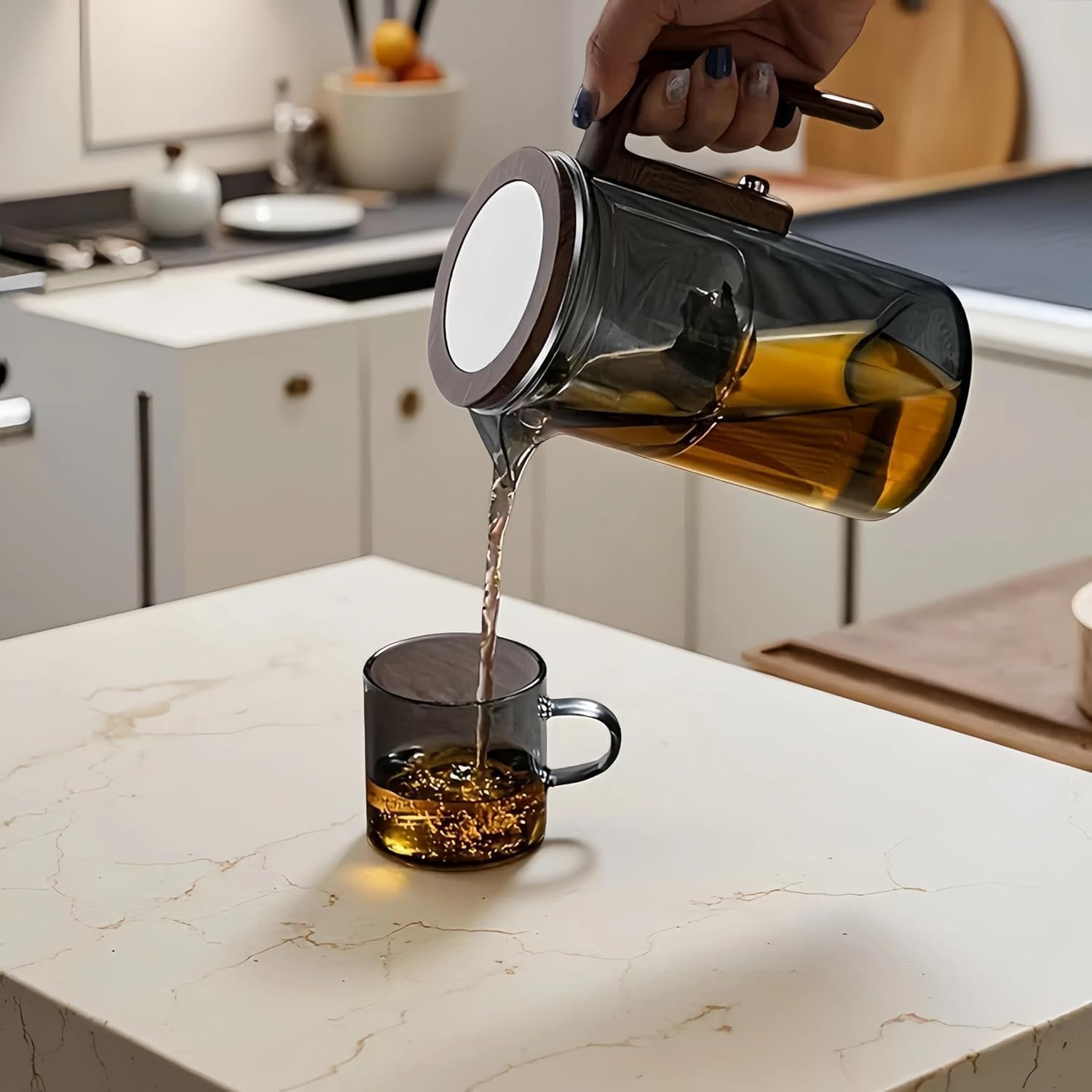 - HIGH QUALITY MATERIALS: The Enchanti glass teapot is made of stronger high borosilicate glass with a 304 stainless steel lid, The tea pot with infusers for loose tea, floral teas and herbal blends., and the handle is made of faux wood grain material.