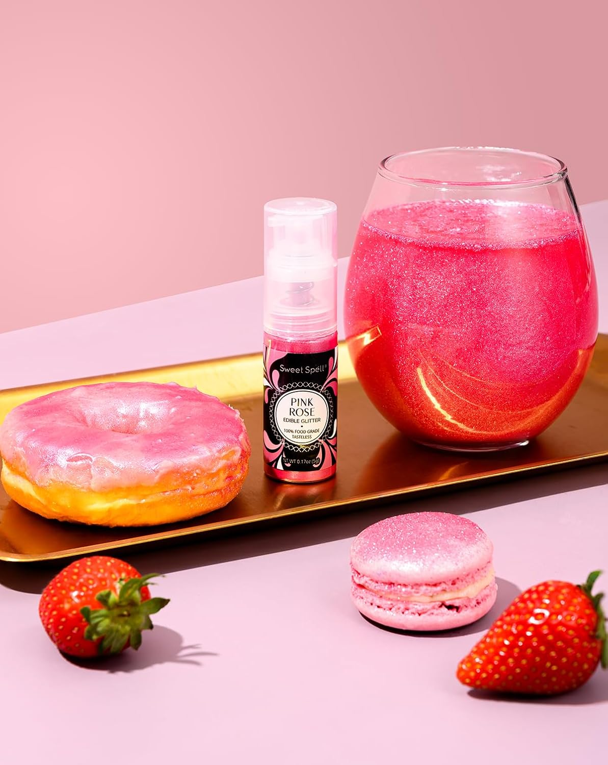 Sweet Spell Edible Cake Glitter Spray – Shimmering Magic for Cakes Decorating & Cocktails – 100% Edible, Food-Grade, Vegan, Gluten-Free (Pink)