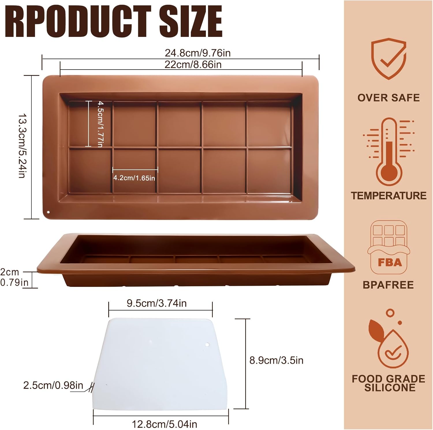- Easy to use &Clean: These chocolate bar molds are easy to fill, pop out, and clean. It requires only a simple rinse with water after using to remove stains quickly, also can be used in the dishwasher.