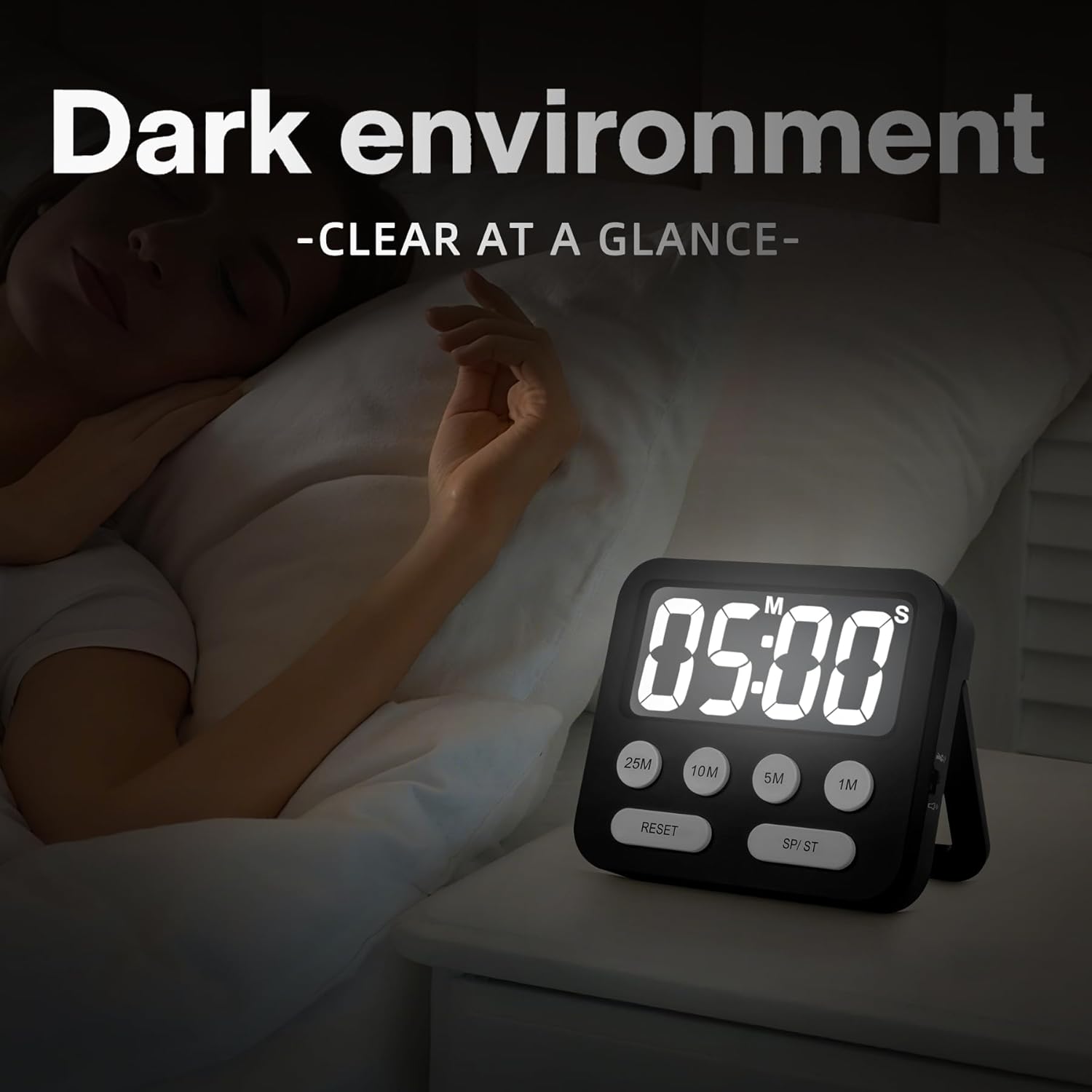 Pomodoro Timer, Digital Productivity Timer with Large Display, Kitchen Timers for Cooking, Settings 1-5-10-25 Minutes, Black