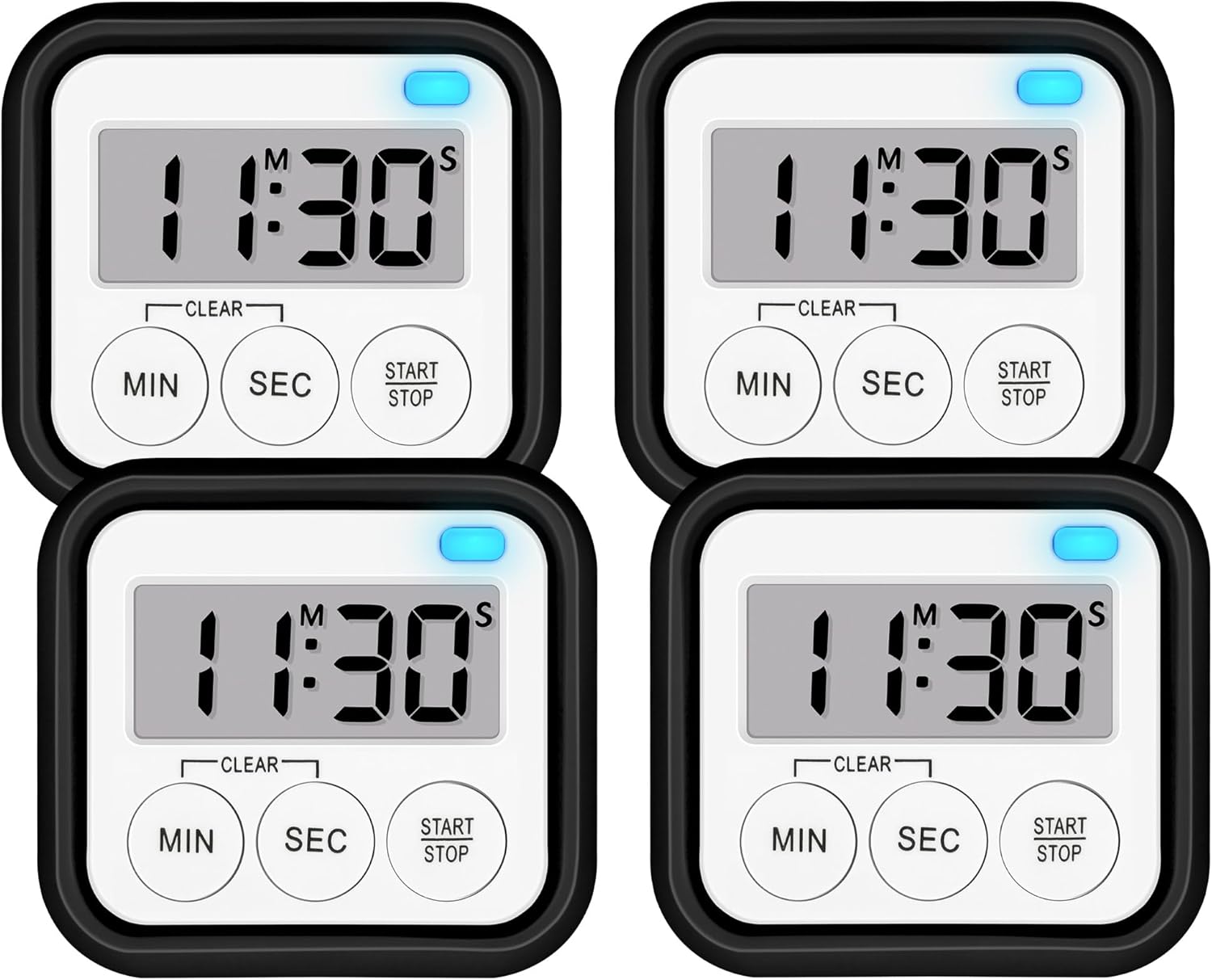 Timer, Kitchen Timers for Cooking Classroom Timer for Kids Teachers Magnetic Digital Timers 4 Pack, Black