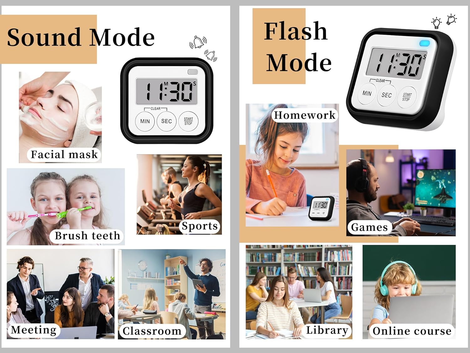 - Flashing Light Mode: Digital timer can adjust the alarm and silent mode according to different needs. It is not only suitable for cooking, baking, exercising, brushing teeth and doing housework, but also for offices, study rooms and libraries, etc.
