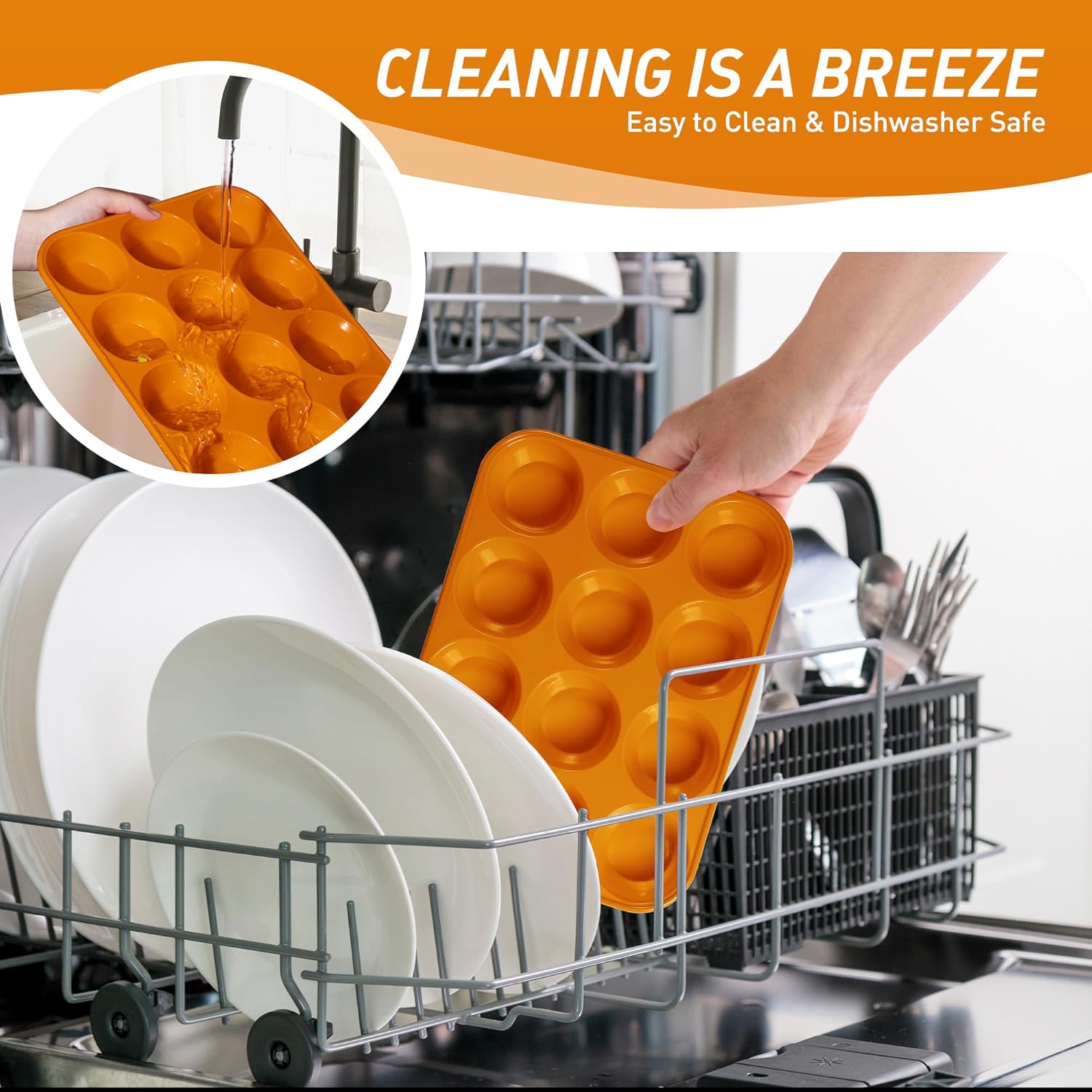 - Food Grade Silicone Muffin Tray: Safe for the oven, microwave, dishwasher, fridge, and freezer. With an impressive heat resistance range from -104°F to 446°F, it’s perfect for all your favorite baked goods. thick walls prevent heat transfer to countertops – safer than other thin plastic baking cupcake muffin pans. Food grade silicone of our baking cupcake muffin pans, maintaining 99% "like-new" appearance after heavy use.