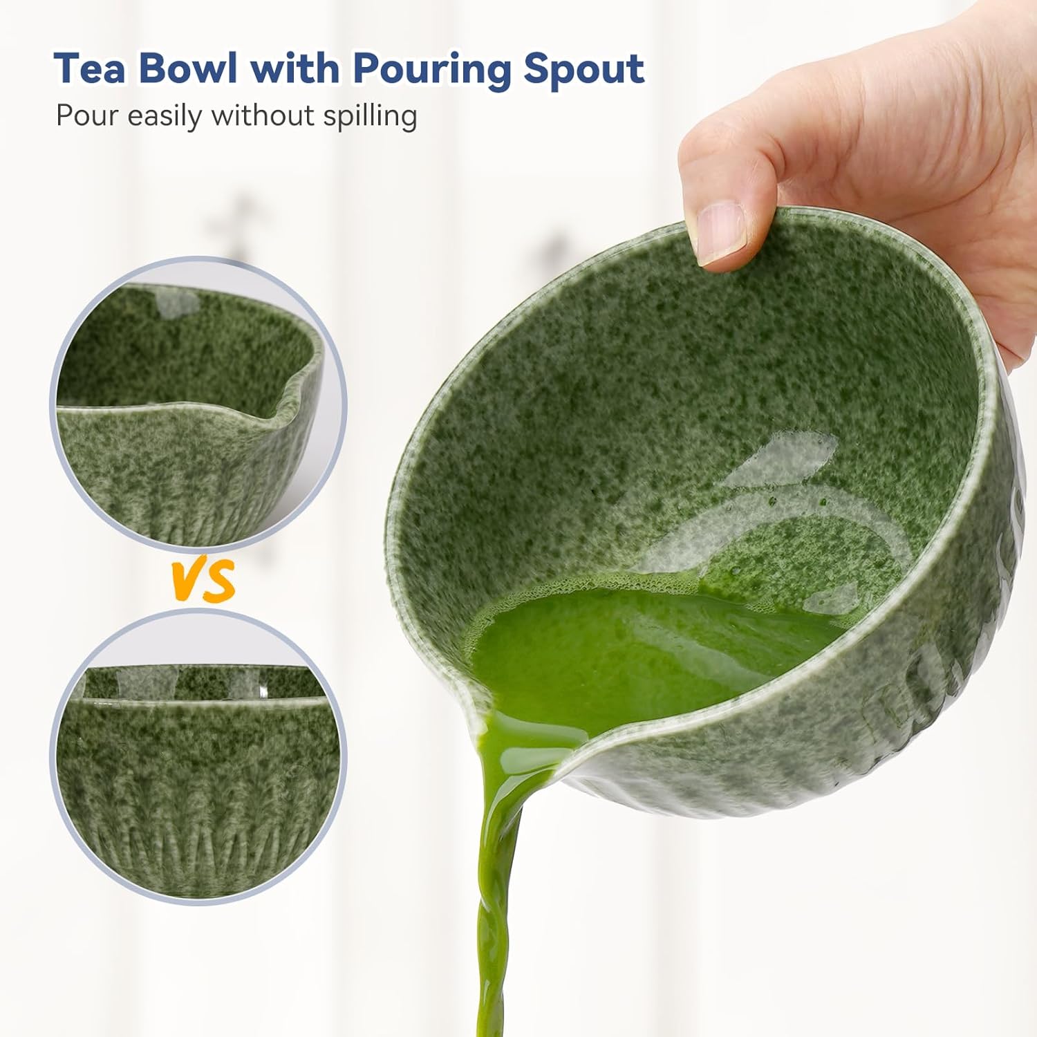 - Tea Bowl with Pouring Spout: The lead-free ceramic matcha bowl (520ml/18.3oz) is designed with a pouring spout that prevents tea spilling and lets you better share matcha with your family and friends (We also equip you with a 9.05" x 12.9" waterproof tea mat so you can keep your table clean while making matcha drink)