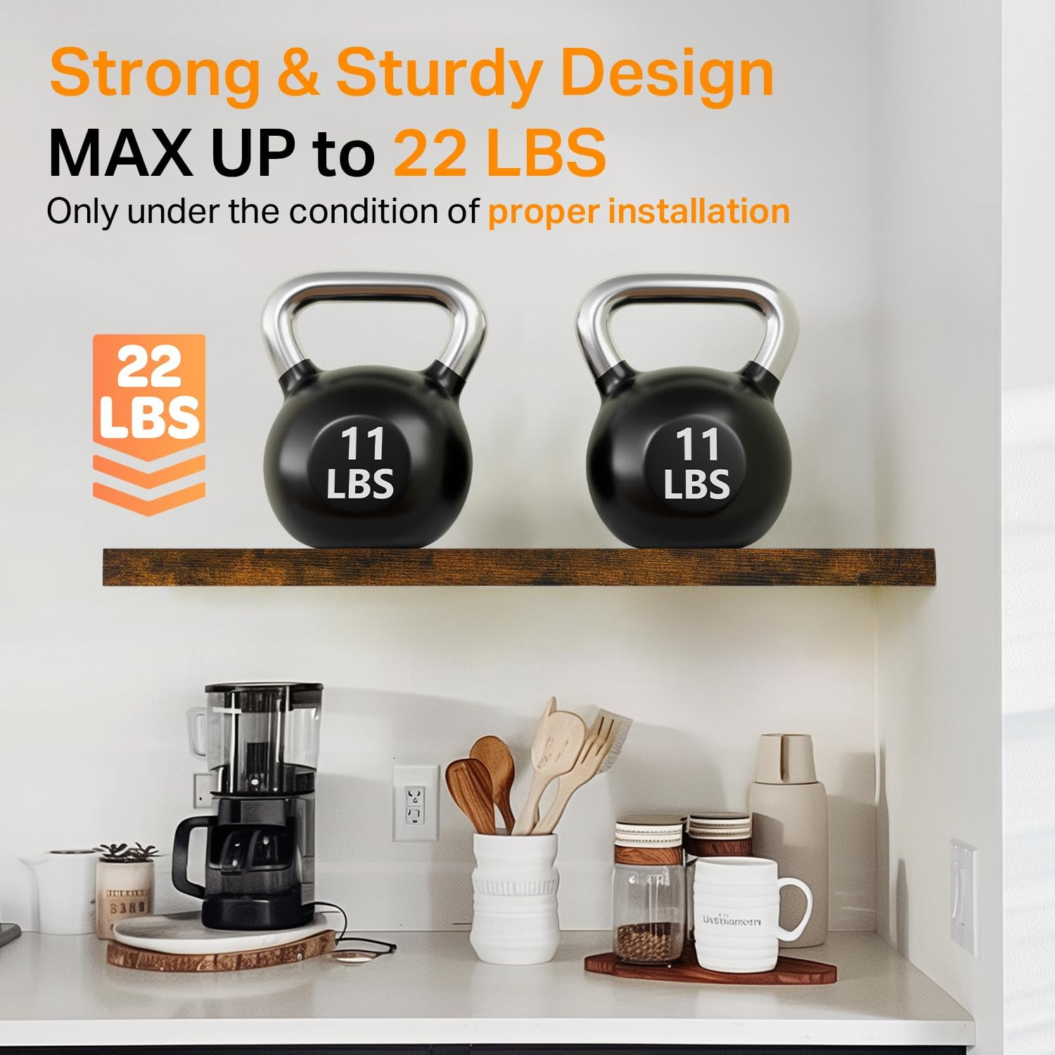 - 𝐒𝐭𝐫𝐨𝐧𝐠 𝐋𝐨𝐚𝐝 𝐂𝐚𝐩𝐚𝐜𝐢𝐭𝐲 – Made from 𝐝𝐮𝐫𝐚𝐛𝐥𝐞 𝐞𝐧𝐠𝐢𝐧𝐞𝐞𝐫𝐞𝐝 𝐰𝐨𝐨𝐝 and reinforced with sturdy brackets, each shelf 𝐬𝐮𝐩𝐩𝐨𝐫𝐭𝐬 𝐮𝐩 𝐭𝐨 𝟐𝟐 𝐥𝐛𝐬, making them ideal for books, plants, toiletries, organization, or decor