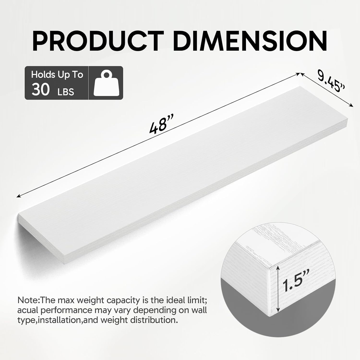 - 𝐒𝐩𝐚𝐜𝐢𝐨𝐮𝐬 & 𝐅𝐮𝐧𝐜𝐭𝐢𝐨𝐧𝐚𝐥 𝐒𝐢𝐳𝐞 – At 𝟒𝟖 𝐢𝐧𝐜𝐡𝐞𝐬 𝐥𝐨𝐧𝐠, these shelves 𝐩𝐫𝐨𝐯𝐢𝐝𝐞 𝐚𝐦𝐩𝐥𝐞 𝐬𝐩𝐚𝐜𝐞 𝐟𝐨𝐫 𝐨𝐫𝐠𝐚𝐧𝐢𝐳𝐢𝐧𝐠 𝐨𝐫 𝐬𝐡𝐨𝐰𝐜𝐚𝐬𝐢𝐧𝐠 𝐢𝐭𝐞𝐦𝐬 𝐰𝐢𝐭𝐡𝐨𝐮𝐭 𝐜𝐫𝐨𝐰𝐝𝐢𝐧𝐠 𝐲𝐨𝐮𝐫 𝐰𝐚𝐥𝐥. Perfect for displaying essentials or decorative accents
