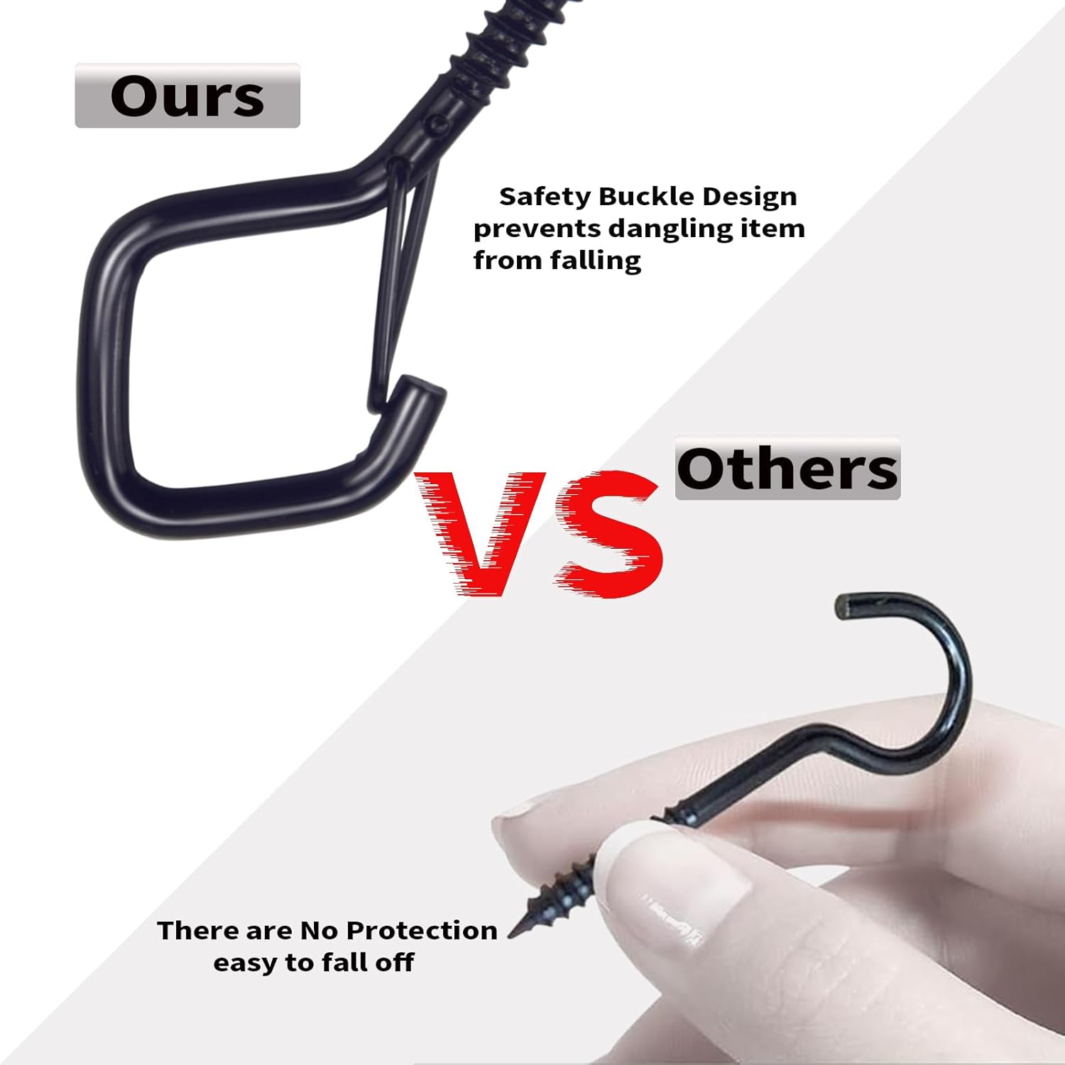 100 PCS Black Eye Screw Hooks for Hanging Heavy Duty with Safety Buckle.Metal Ceiling Hooks for Hanging Plants Cup Wind Chime Bird Feeders Patio Lights at Indoor&Outdoor