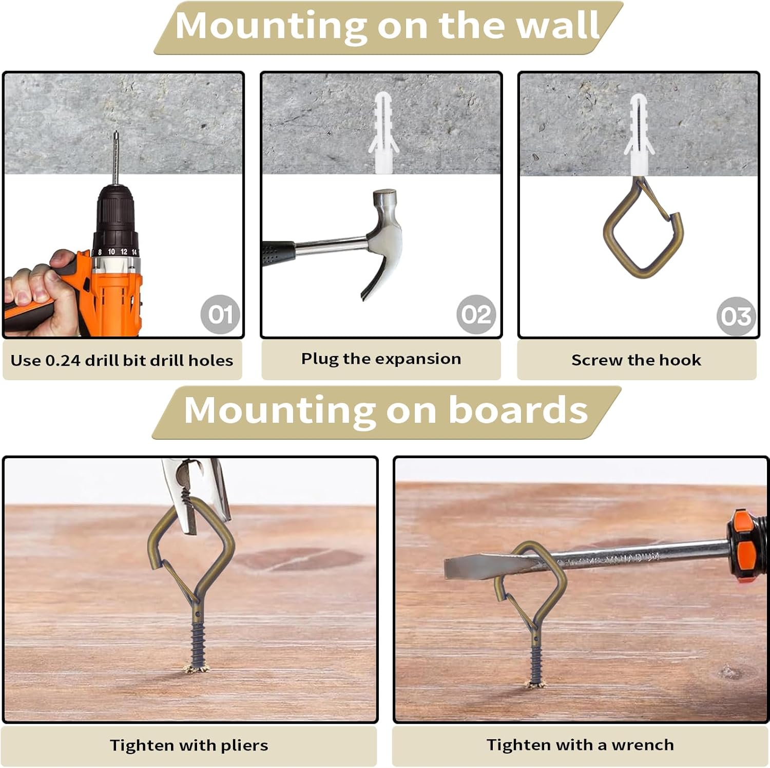 - 🔧【Easy Screw-In Installation】 Simply twist into wood, ceilings, beams, fences, or walls for instant hanging support. 2.36-inch length provides a firm hold.