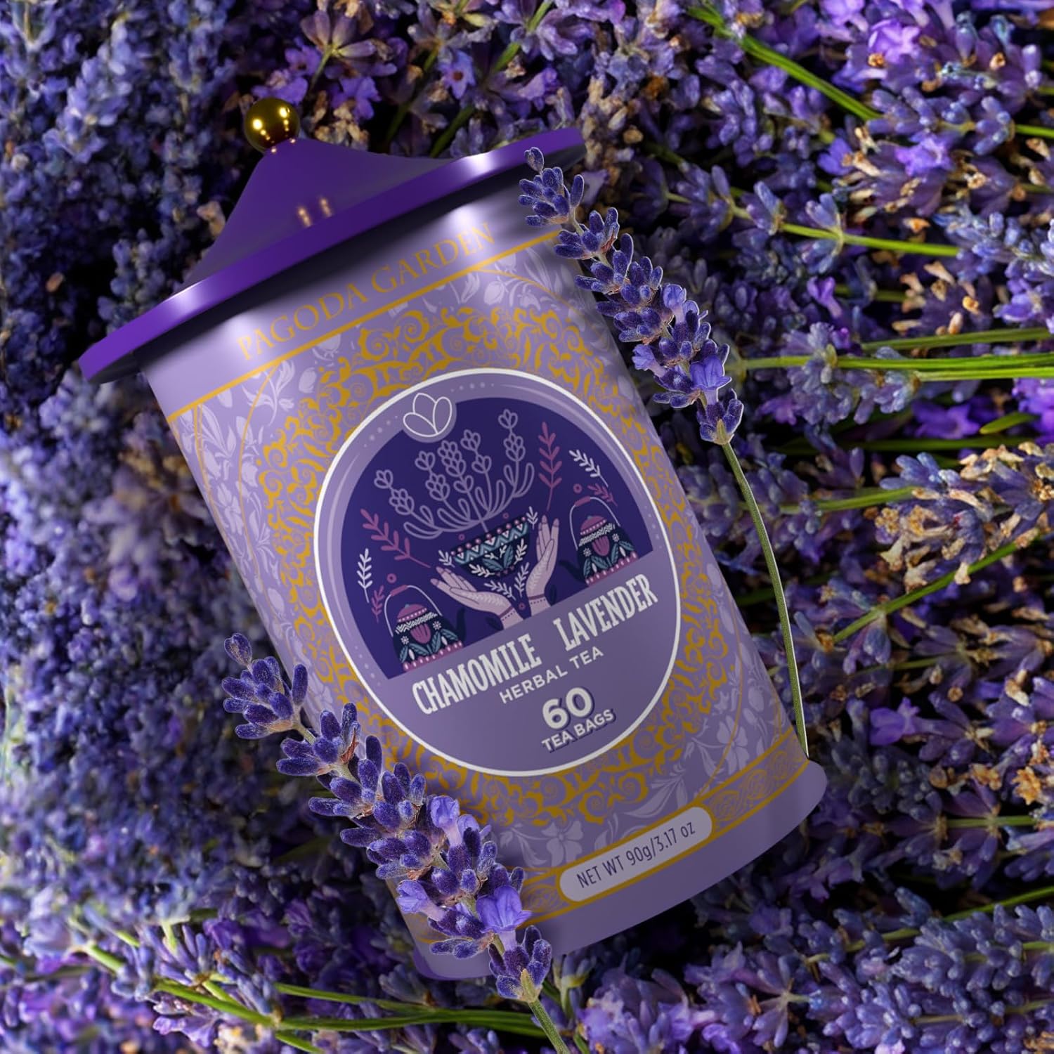 Life Plus Style Gourmet Pagoda Garden Chamomile Lavender Organic Herbal Tea Caffeine Free Hot or Iced Floral Blend Natural Delicious Sleep Tea 60 Tea Bags