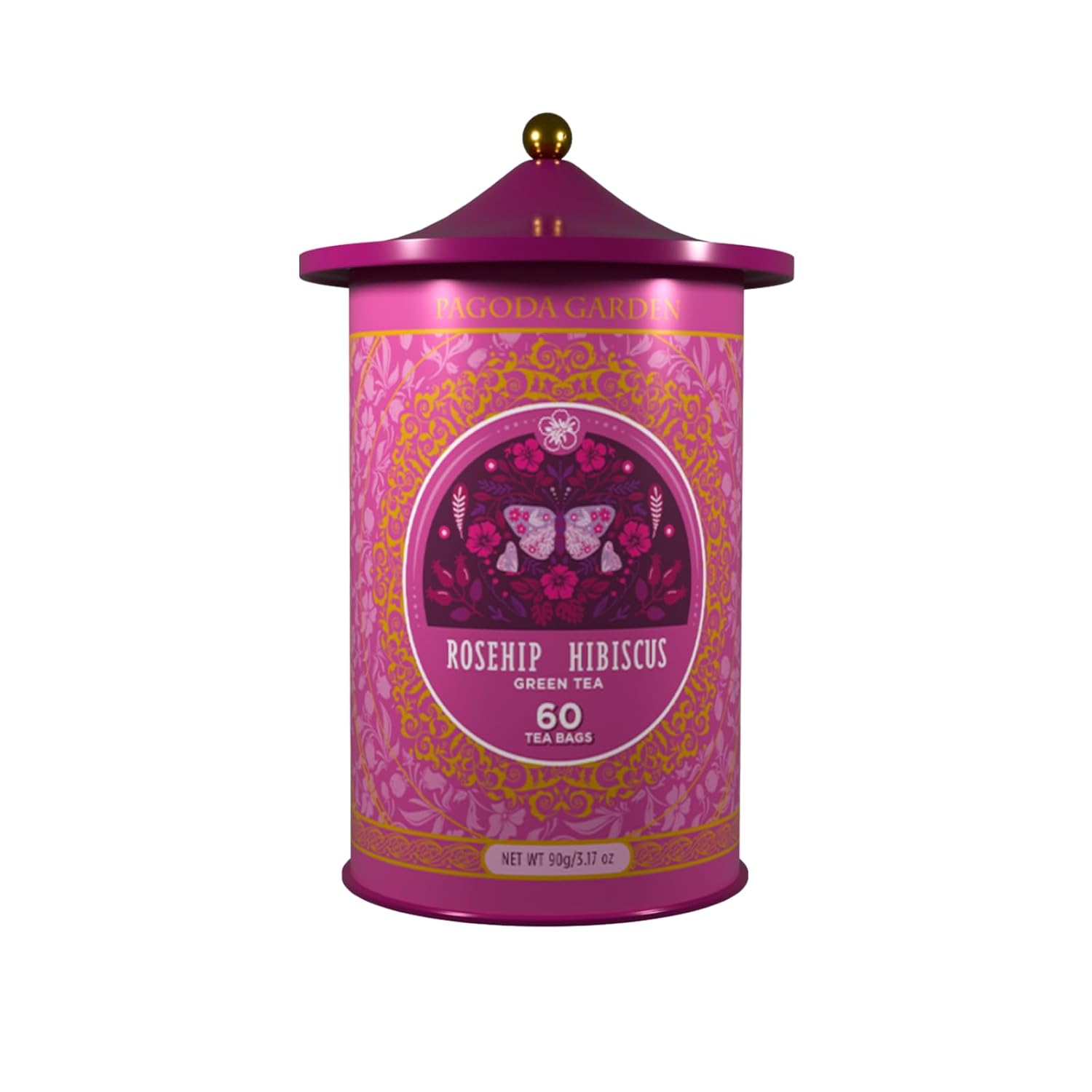 Life Plus Style Gourmet Pagoda Garden Rosehip Hibiscus Green Tea Organic Herbal Tea Caffeinated Hot or Iced Natural Ceylon Tea Antioxidants Supports Wellness 60 Tea Bags