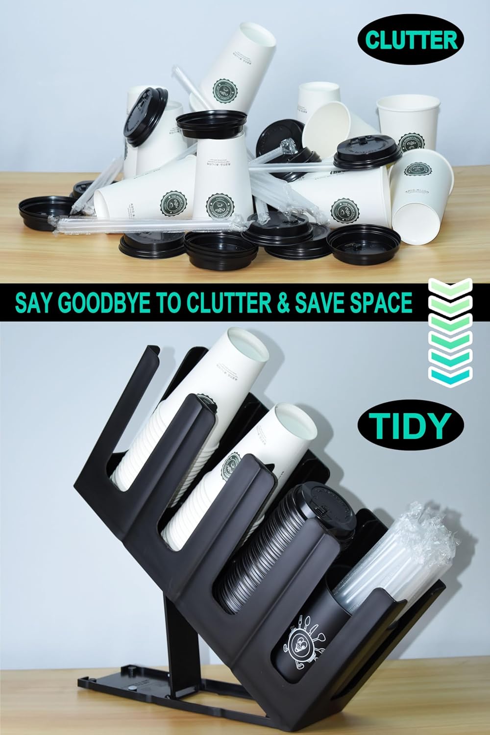 - --Space-Saving: Our cup organizer requires no assembly,storing cup&lid and straw,kept cups organized,maximizing your available space