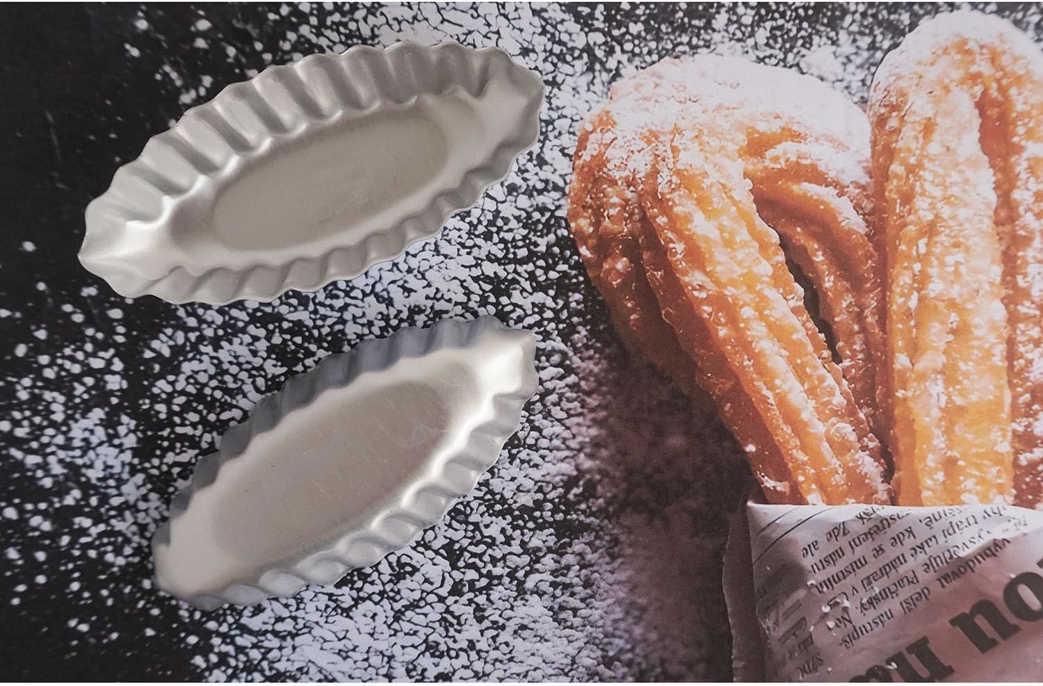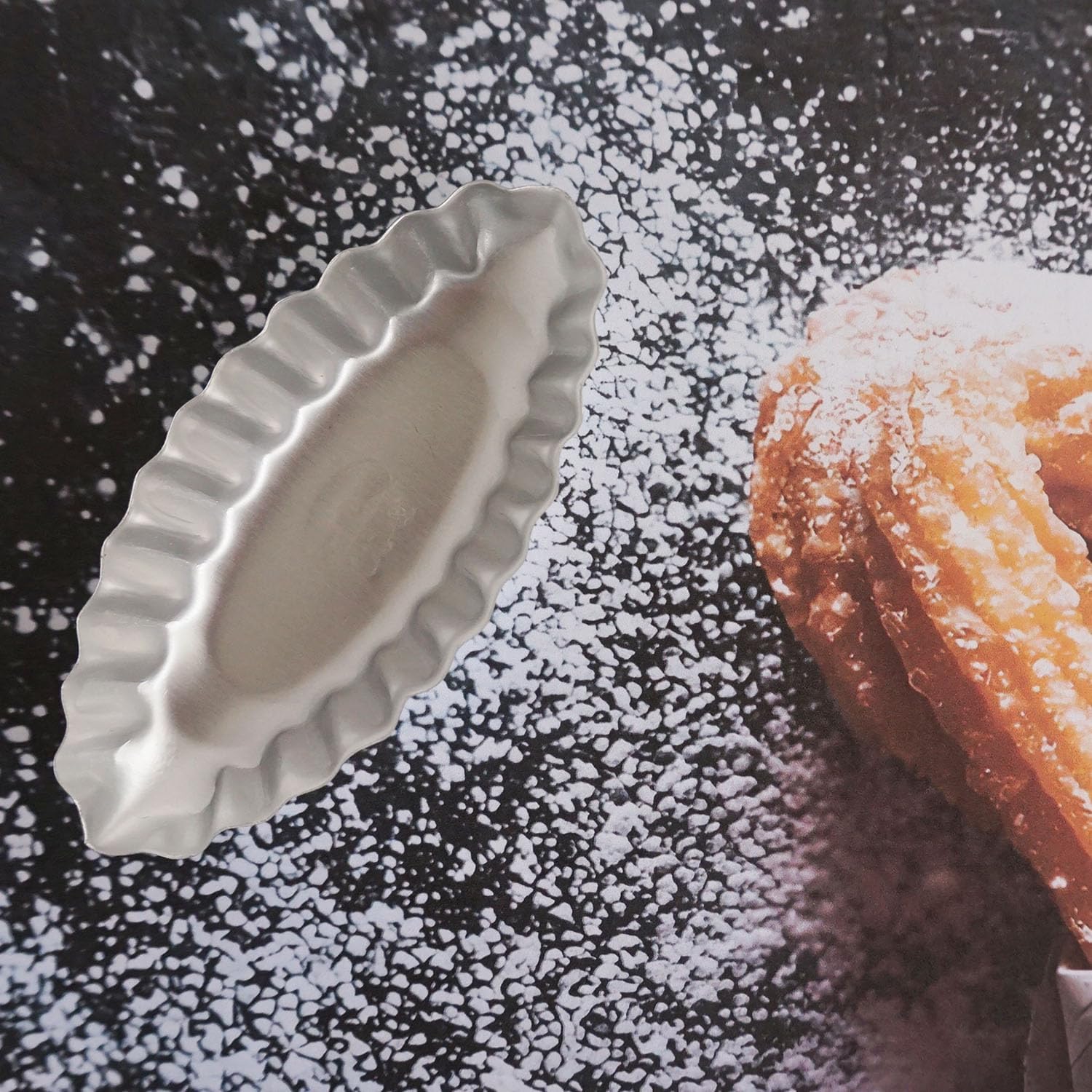 - Aluminum alloy dessert pans: metal pans, sturdy for long time use, withstands temperatures up to 446℉, pastry could slip out from the mold easily; size 3.86x 1.77x 0.59" / 9.8x 4.5x 1.5cm, ideal for making mini size egg tarts