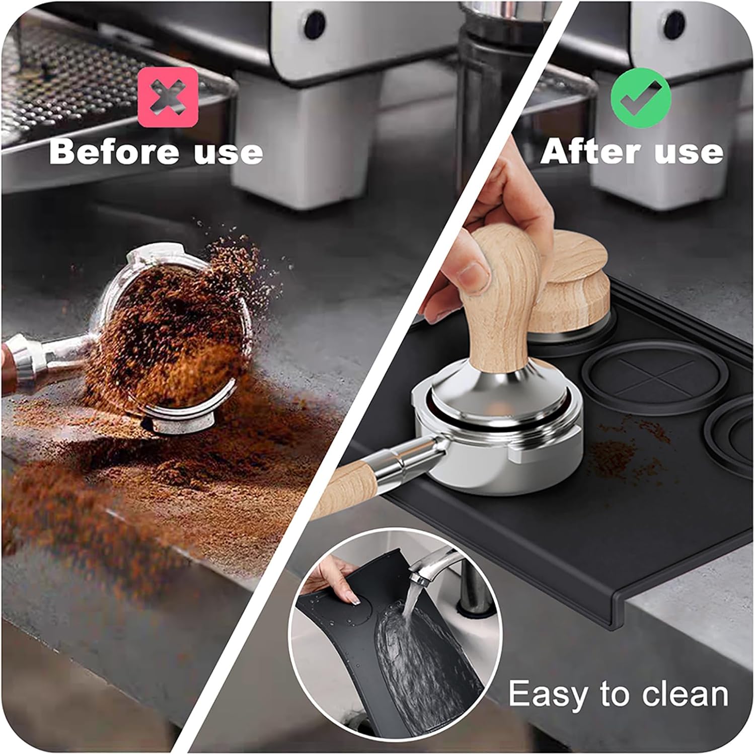 - Professional-Grade Protection Espresso Tamping mat Crafted from thick, food-grade silicone to shield countertops from scratches and reduce metal tamper noise. Heat-resistant (withstands boiling water) and odor-free.