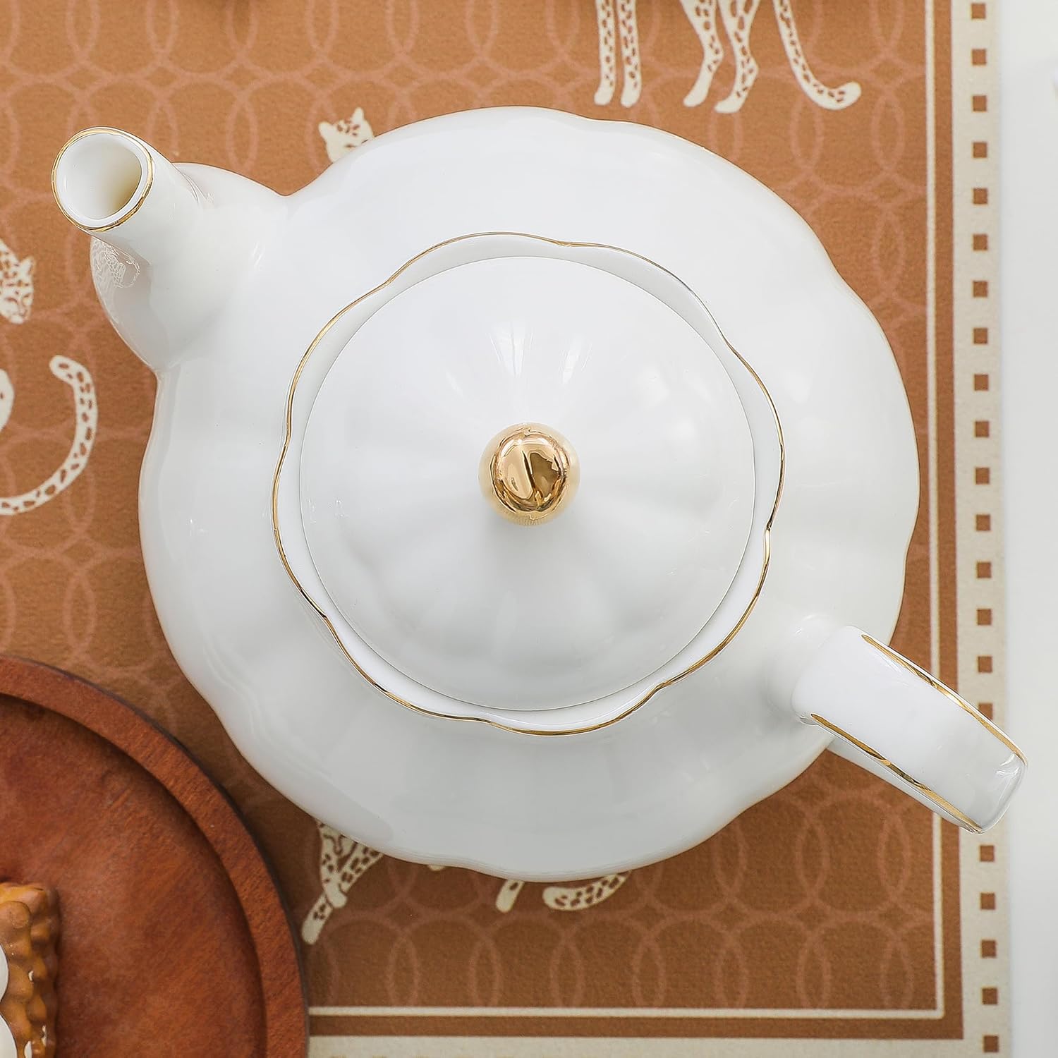 - 1. Elegant Design with Gold Accents This beautifully crafted white porcelain teapot features a classic design enhanced by delicate gold trim. Its timeless elegance makes it a perfect addition to any tea lover’s collection.