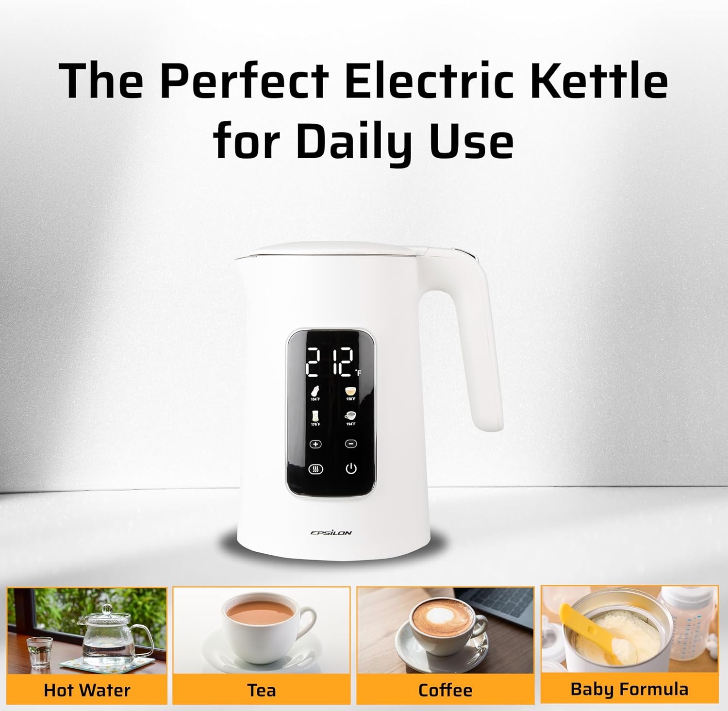 Epsilon LCD Electric Kettle 1500W - 1.7L Hot Water Tea Kettle with Digital Display, Temperature Control, Fast Boil, BPA-Free Electric Teapot with Auto Shut-Off & Boil Dry Protection