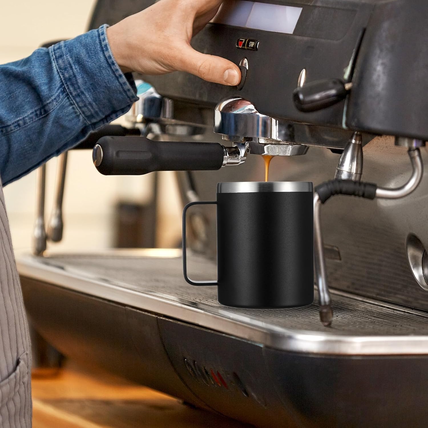 - 12oz Coffee Cup with Handle:Comfortable handle design, easy grip, making it the great outdoor travel mug and the coffee cup in the office for everyday use as well