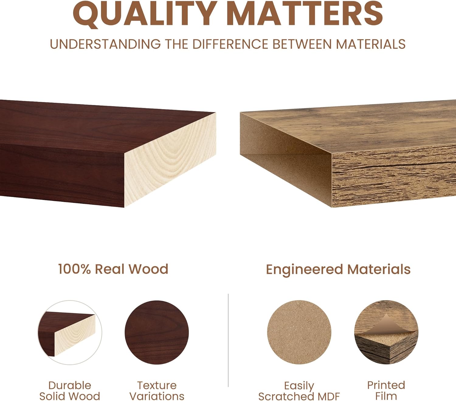 Fun Memories Rustic Real Wood Floating Shelves, 8 Inch Deep Floating Shelf Wall Mounted, 36" W x 8" D Wall Shelves Storage Shelves for Living Room, Bedroom, Bathroom, Red Brown, Set of 2