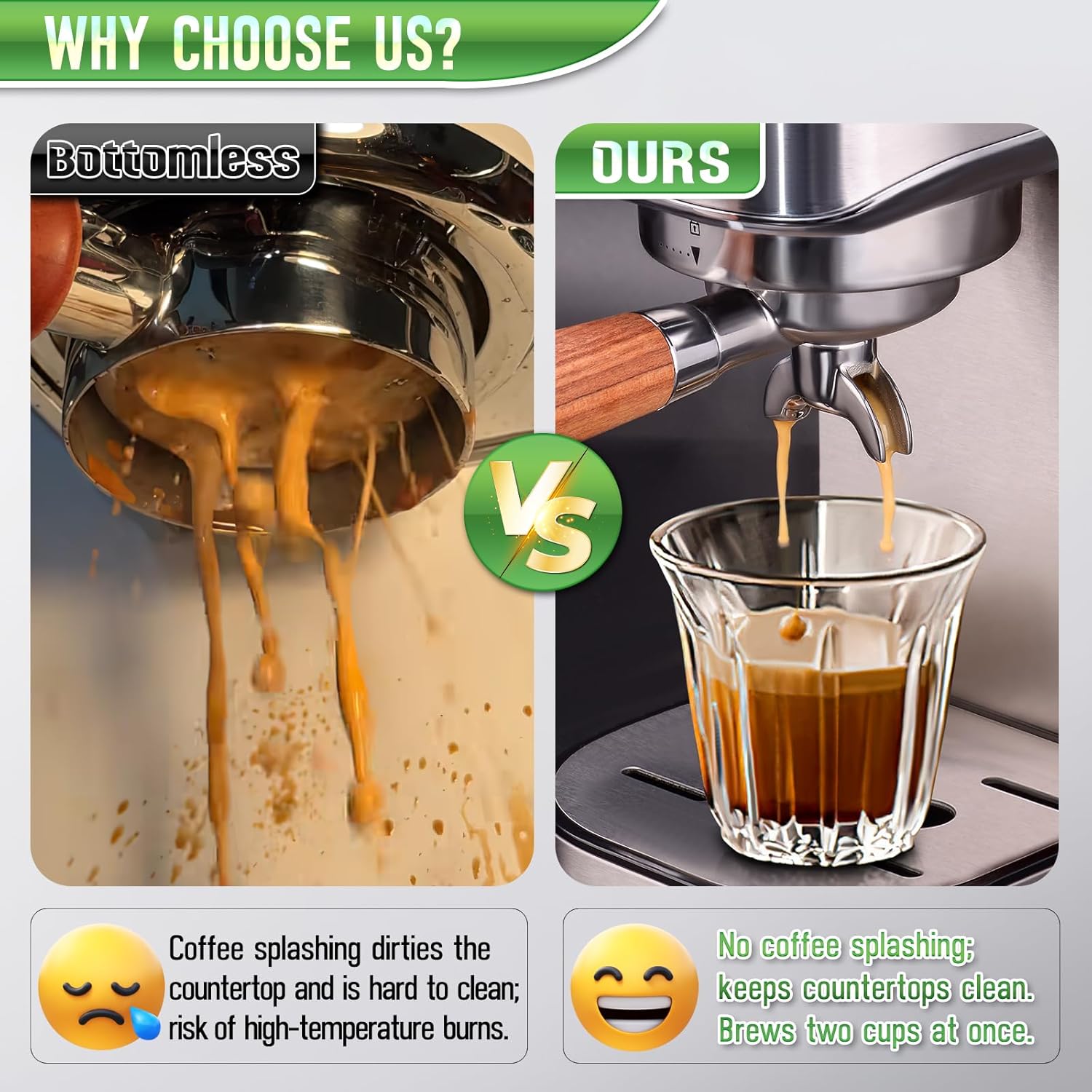 - Dual Spout for 2 Cups in 1 Shot:Simultaneously brew two rich espresso shots with hole dispersion plate—perfect for family breakfasts or entertaining guests