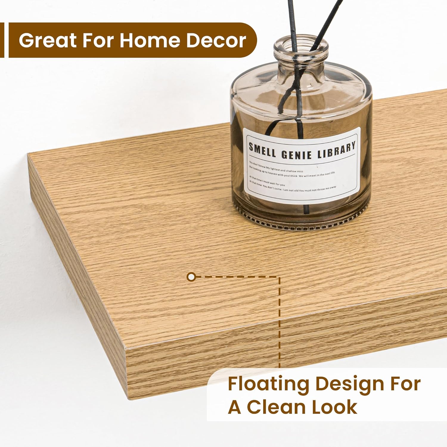 Fun Memories 48 Inch Deep Floating Shelves for Wall, 2 Pack of Long Wall Mounted Wood Shelves with Invisible Brackets for Bathroom, Bedroom, Living Room, Kitchen Decor and Storage, Oak