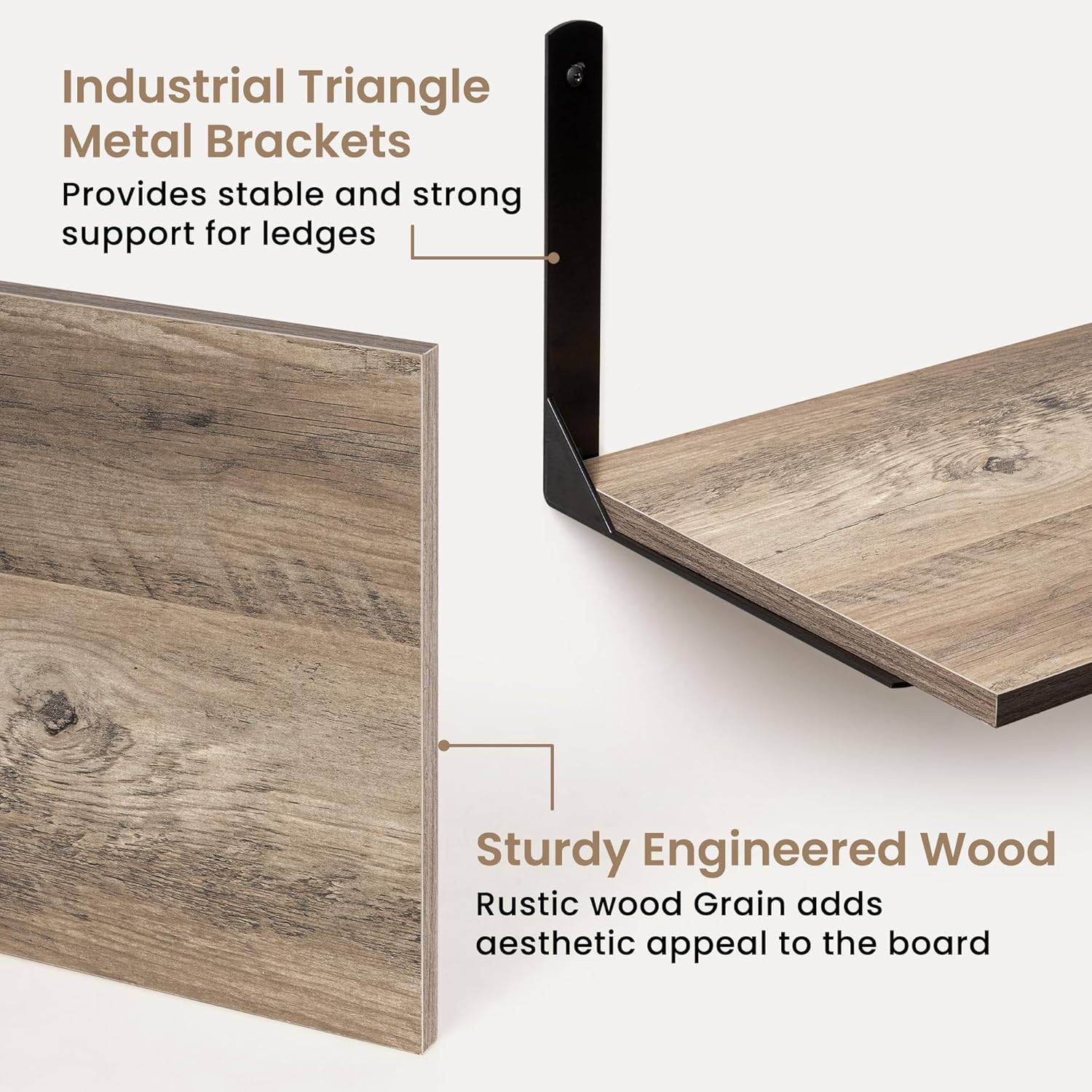 - 【Strong & Durable Construction for Long-Lasting Use】Constructed from high-quality, smooth-finished MDF, these wall shelves provide a sturdy and attractive foundation that resists warping and scratching over time. The robust black L-shaped metal brackets are designed from industrial-grade steel, ensuring excellent support and stability. Each shelf can bear up to 50 lbs when properly installed, allowing you to confidently store heavier items like books, cookware, or collectibles without worry.