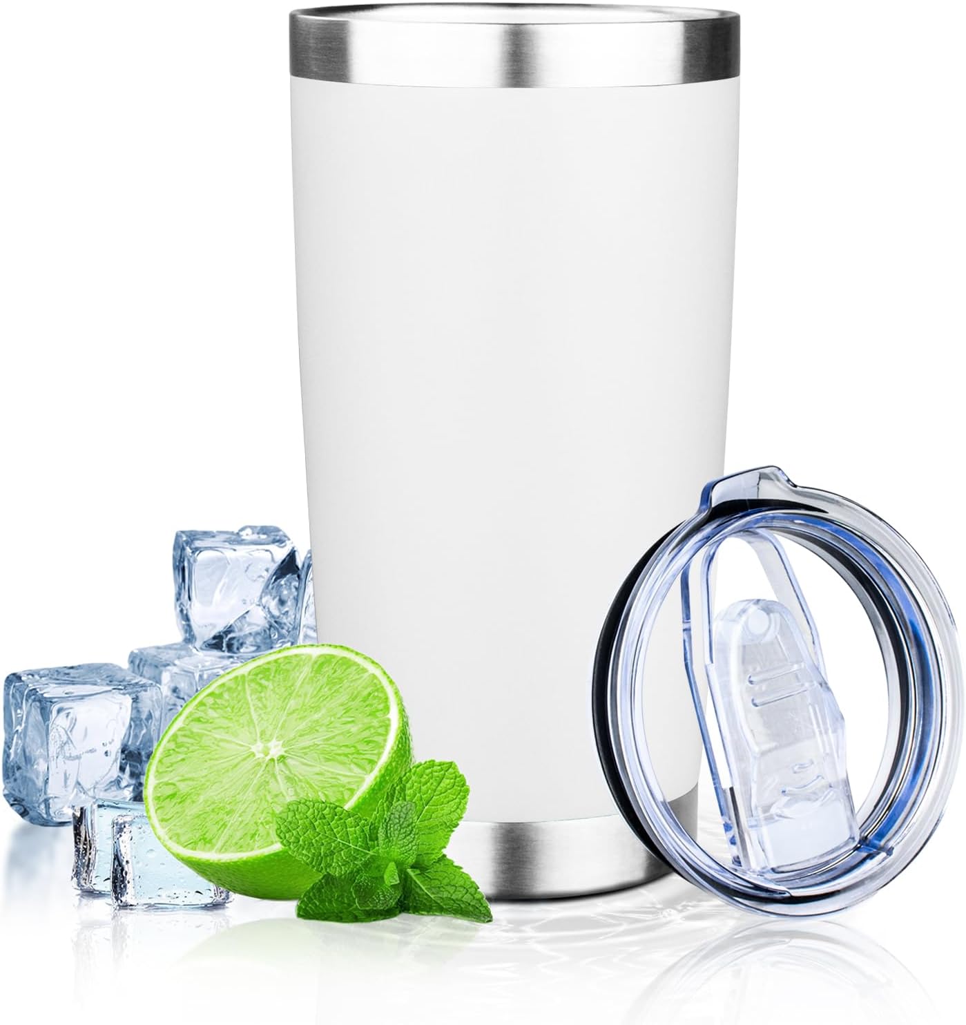 20oz Tumbler with Lid Double Wall Vacuum Insulated Travel Coffee Mug Stainless Steel Thermal Cup Powder Coated Sturdy Coffee Tumbler for Hot and Cold Beverage (White,1)