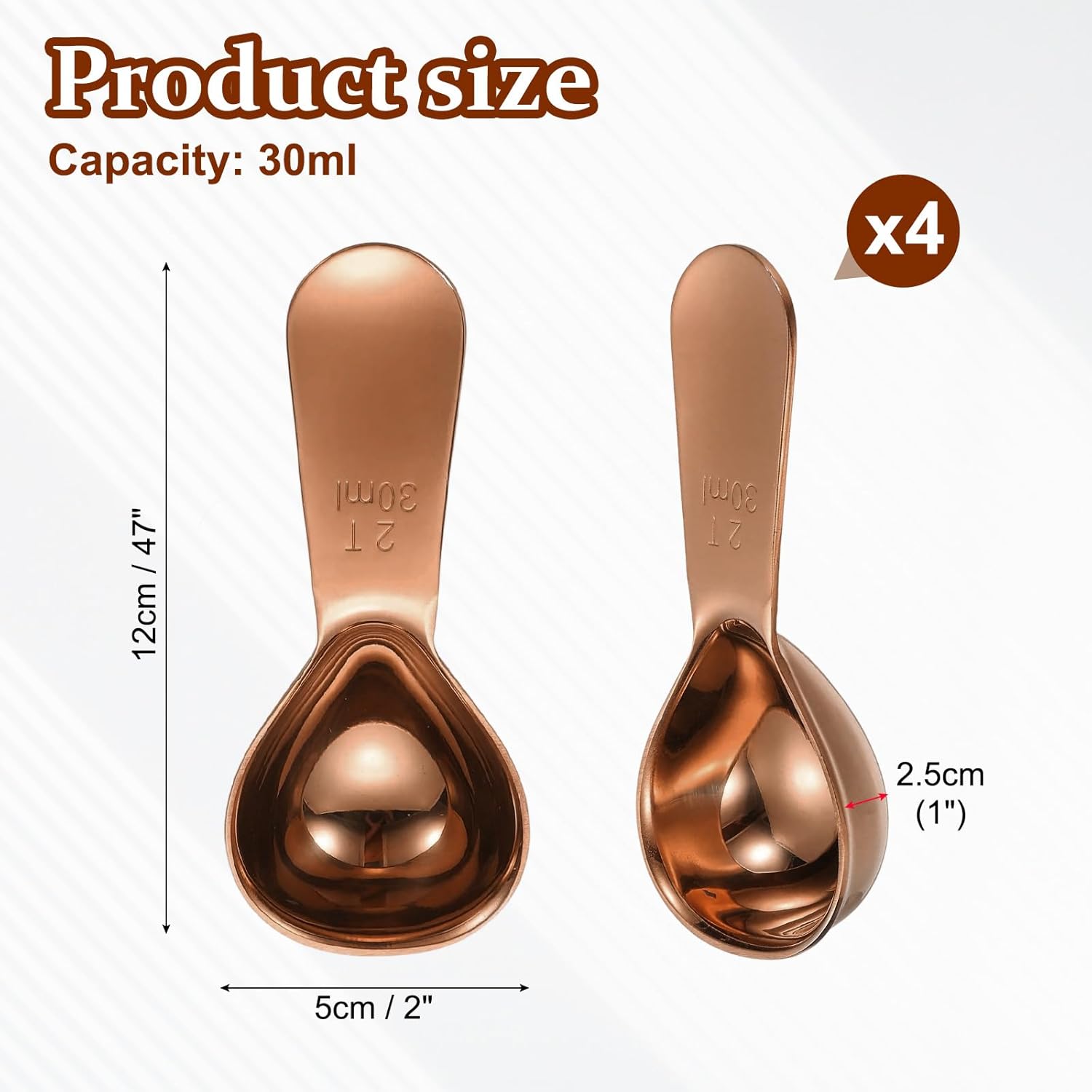 uxcell 2Pcs Stainless Steel Coffee Scoop, 30ml Short Handle Measuring Spoon for Ground Coffee Tea Sugar Kitchen Gifts, Rose Gold