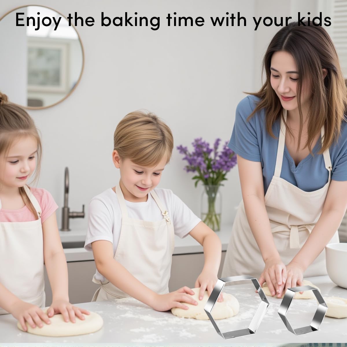 - 【Safe Design】 The Regular Hexagon cookie cutter has a 1-inch sharp cut for easy use, while the safe rolled edges, smooth mirrors and good connection technology ensure no injuries during use