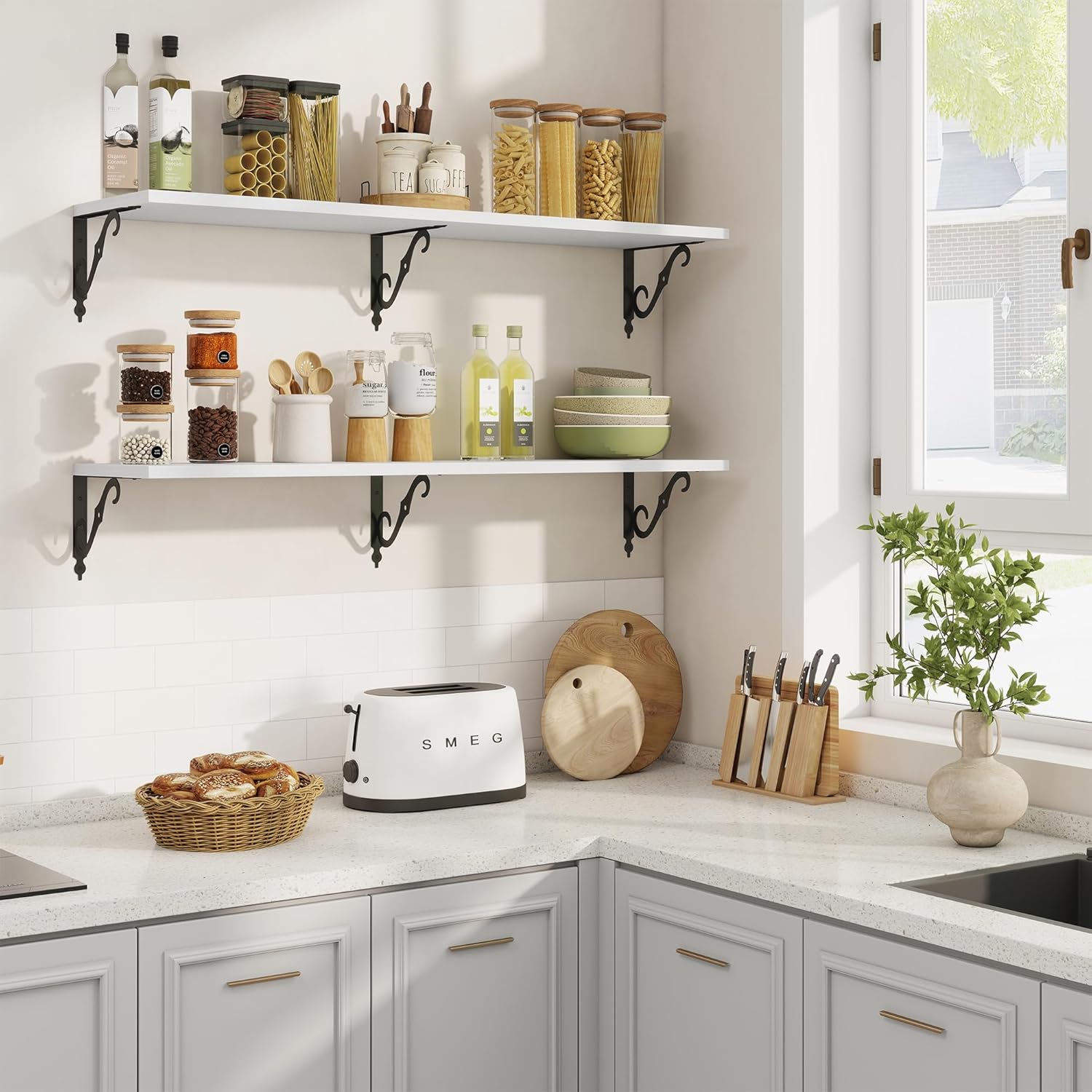 - Suitable for All Occasions: The floating shelves are designed for storage and decoration, wall-mounted shelves are ideal accent for any room - from keeping seasoning, plates, spices bottles in a kitchen area to holding books, collection, globe, photo frame, small plants and trophies in a living room, office, study or organizing hand towels and toiletries in a bathroom