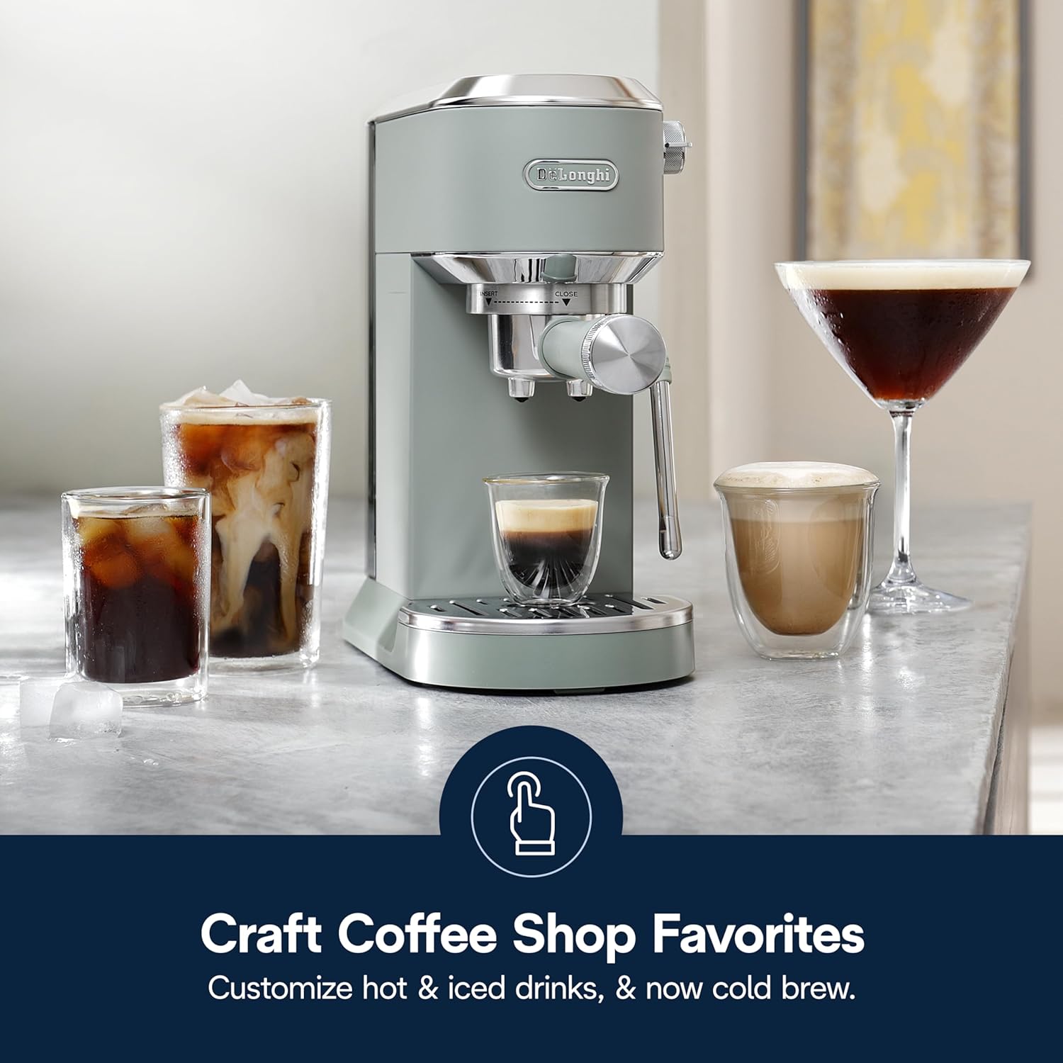 De'Longhi Dedica Duo Compact Espresso Machine - Cold Brew Coffee Maker with Milk Frother Wand- for Espresso, Hot & Iced Coffee, Cappuccinos, Lattes & Home Barista Brewing, Pistachio Green