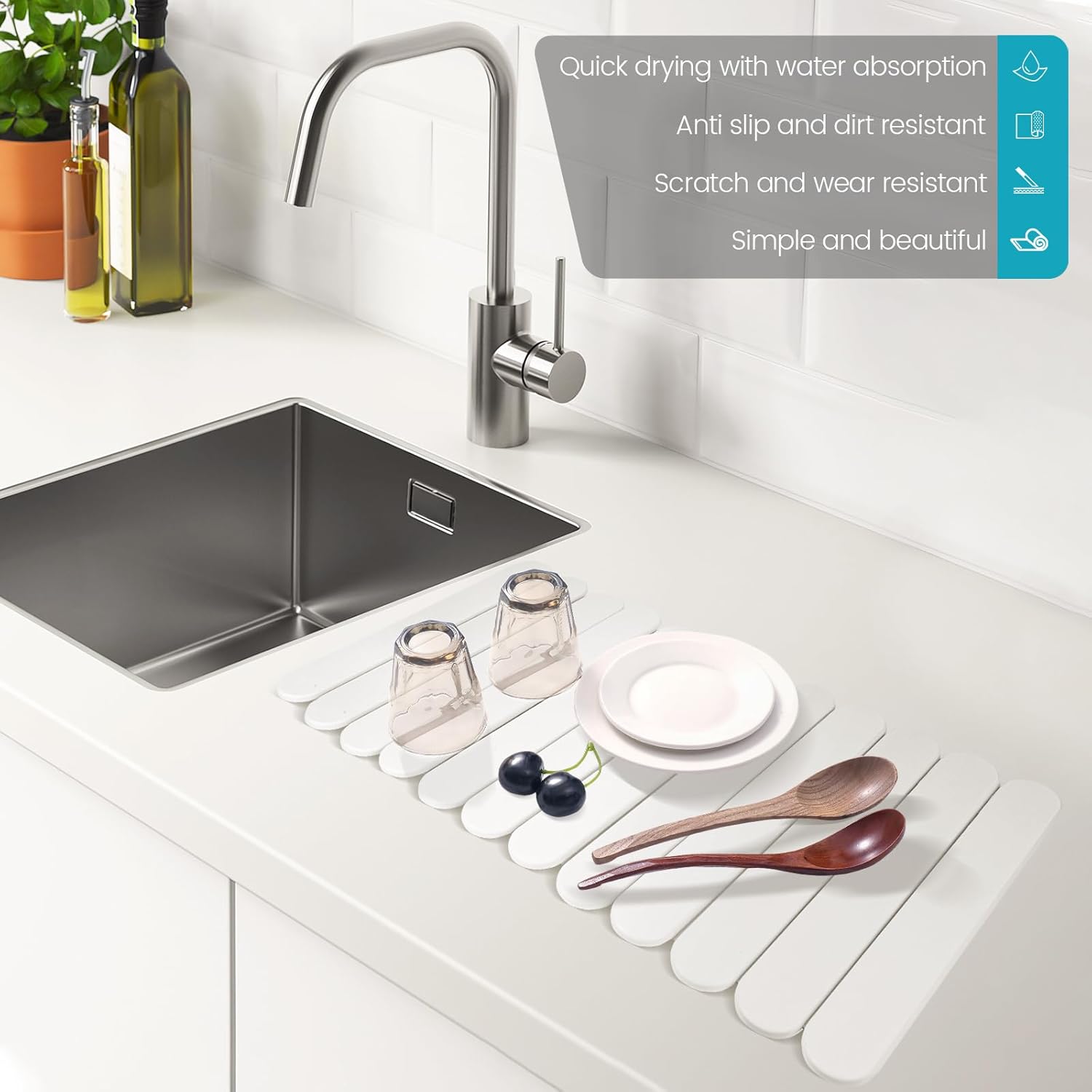 - Exceptional Absorbency: The kitchen stone drying mat boasts super absorbent capabilities, quickly soaking up water within minutes to keep your countertops dry