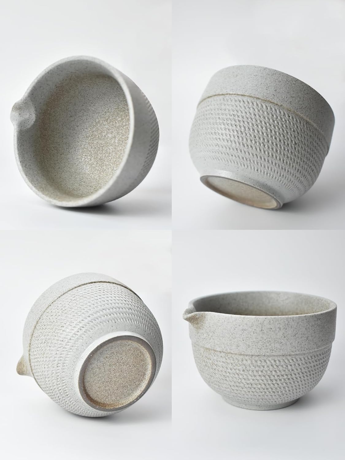 - Matte Ceramic Bowl with Subtle Gradient: The handcrafted chawan features a soft gray matte glaze with natural speckling and a warm, earthy gradient at the base. The understated spout design makes pouring smooth and mess-free.