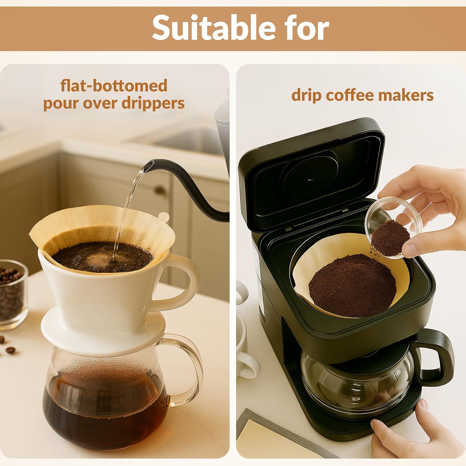- #4 STANDARD SPECIFICATION: Qukisuma strictly follows the standard size design of #4 coffee filter, suitable for most 8-12 cup drip coffee makers (such as Cuisinart, Ninja, Hamilton Beach, etc.) and flat-bottomed pour over drippers.