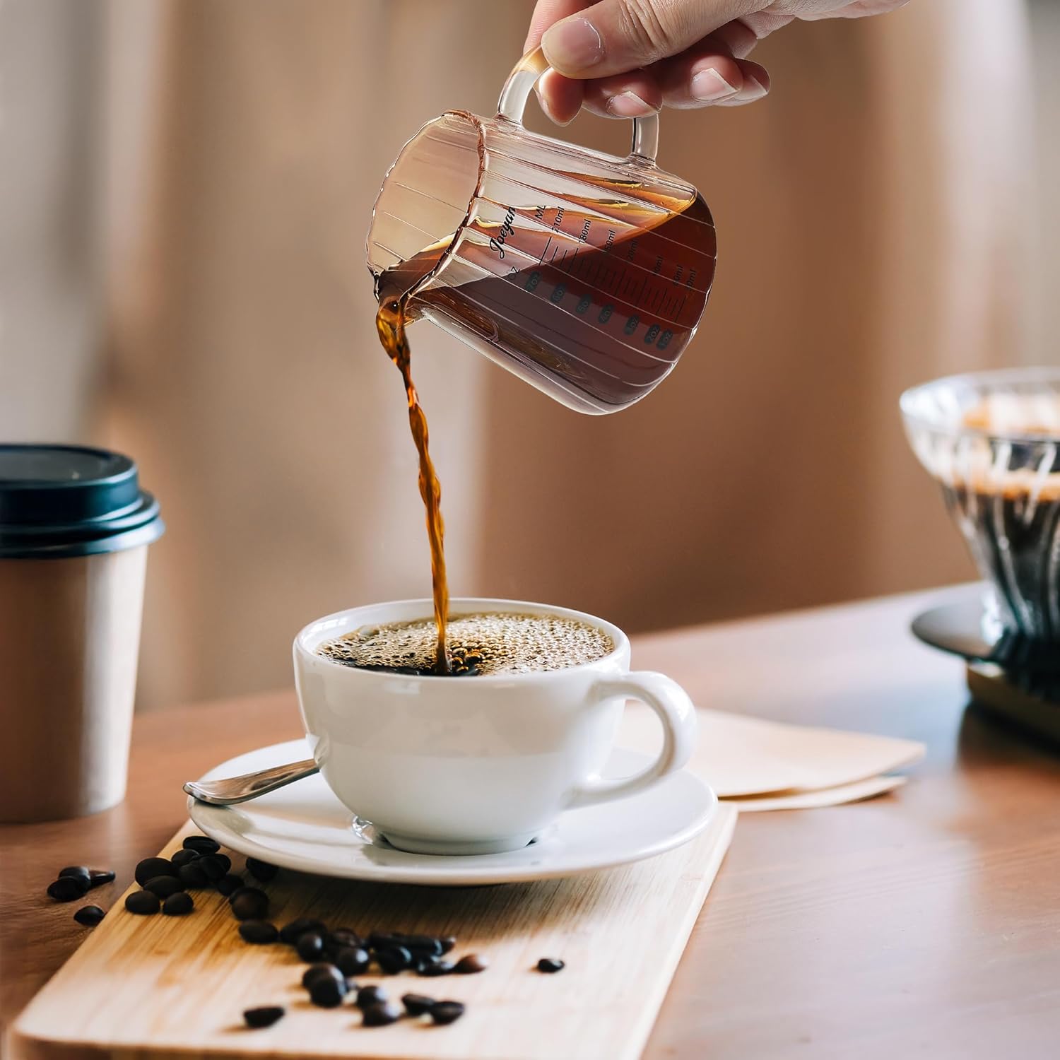 - With Glass Handles: The well-sized insulated handle protects against burns when handling hot liquids like coffee, melted butter, or boiling syrup.