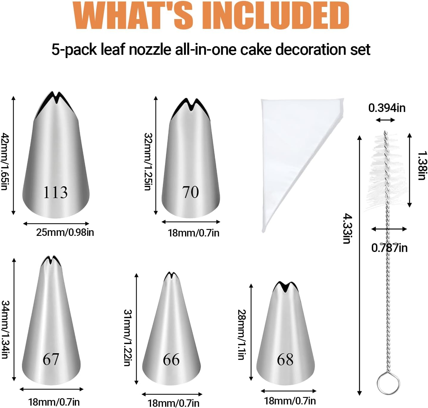- Package List: You will receive 5 flower piping tips of different shapes, which can extrude leaves of various shapes, with 50 pieces of piping bags, and 1 piece of piping cleaning brush. You can use this cake piping tips to make various patterns, such as sunflowers and roses, and make various types of cookies.