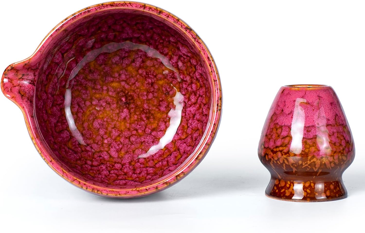 - This hand-made kiln-changed glaze ceramic matcha bowl perfectly combines the traditional oriental tea ceremony aesthetics with modern practical design. It is the finishing touch on the tea ceremony and a heart-warming gift for matcha lovers. Each bowl is fired at 1300℃, *each one is unique**, carrying the warmth of craftsmanship and the gift of nature.