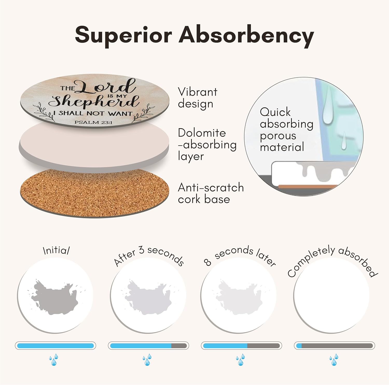 - Perfect Fit for Every Cup: This coasters set of 6 features a 4-inch diameter that fits most mugs, tumblers, and glasses. Ideal as cup coasters or desk coasters, each absorbent coaster catches drips and condensation to protect surfaces in any setting—home, bar, or office.
