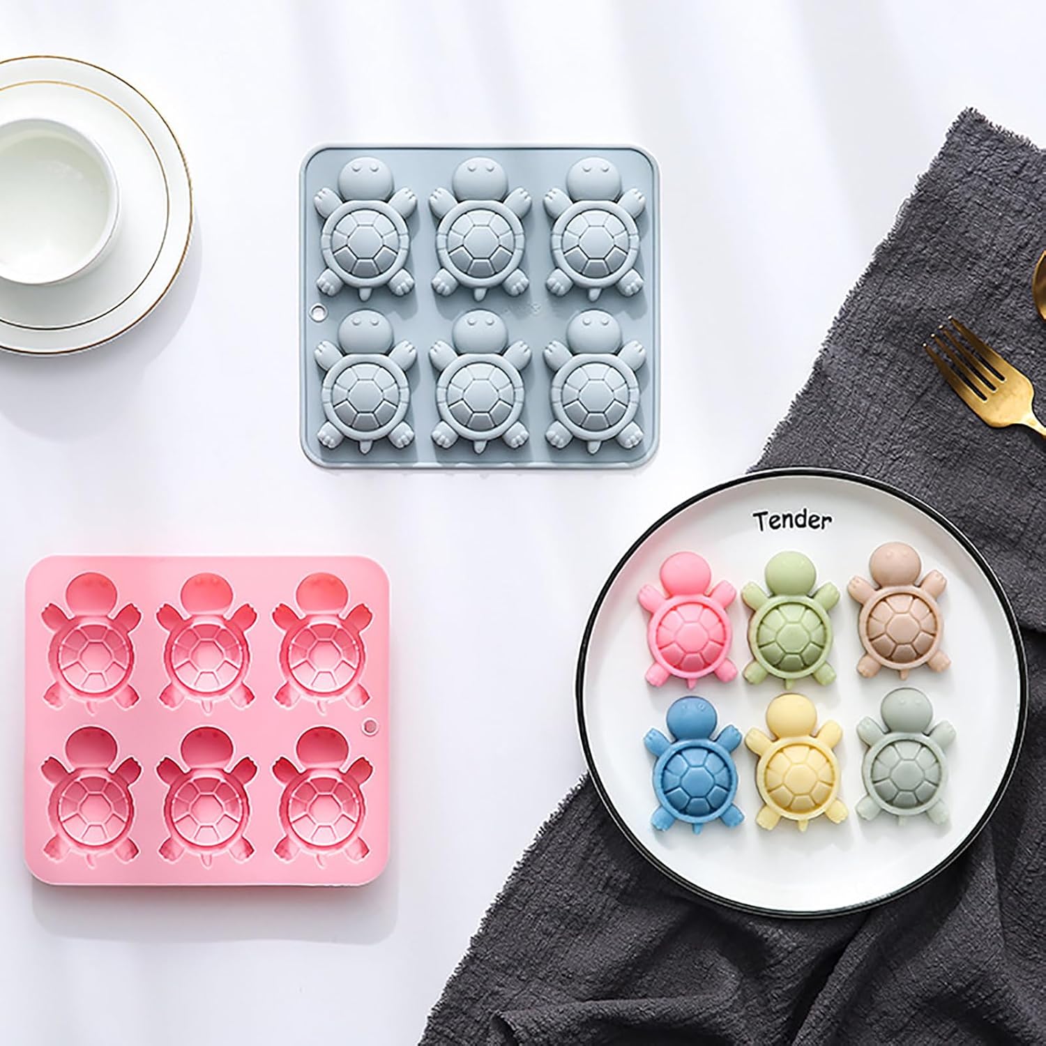 - Turtle Silicone Molds: You will get 2 pcs silicone molds in pink and gray. Each mold has 6 cavities, perfect for making a delicious fluted cupcake and desserts etc, convenient and quick
