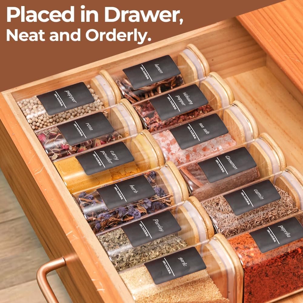 - Stylish Spice Jar Set: 8 oz Clear jars with bamboo lids are both functional and visually appealing, making spices easy to spot and stay fresh. Nice and cute look makes the 8 oz glass jars with lids as a good gift for anyone who loves kitchen organization