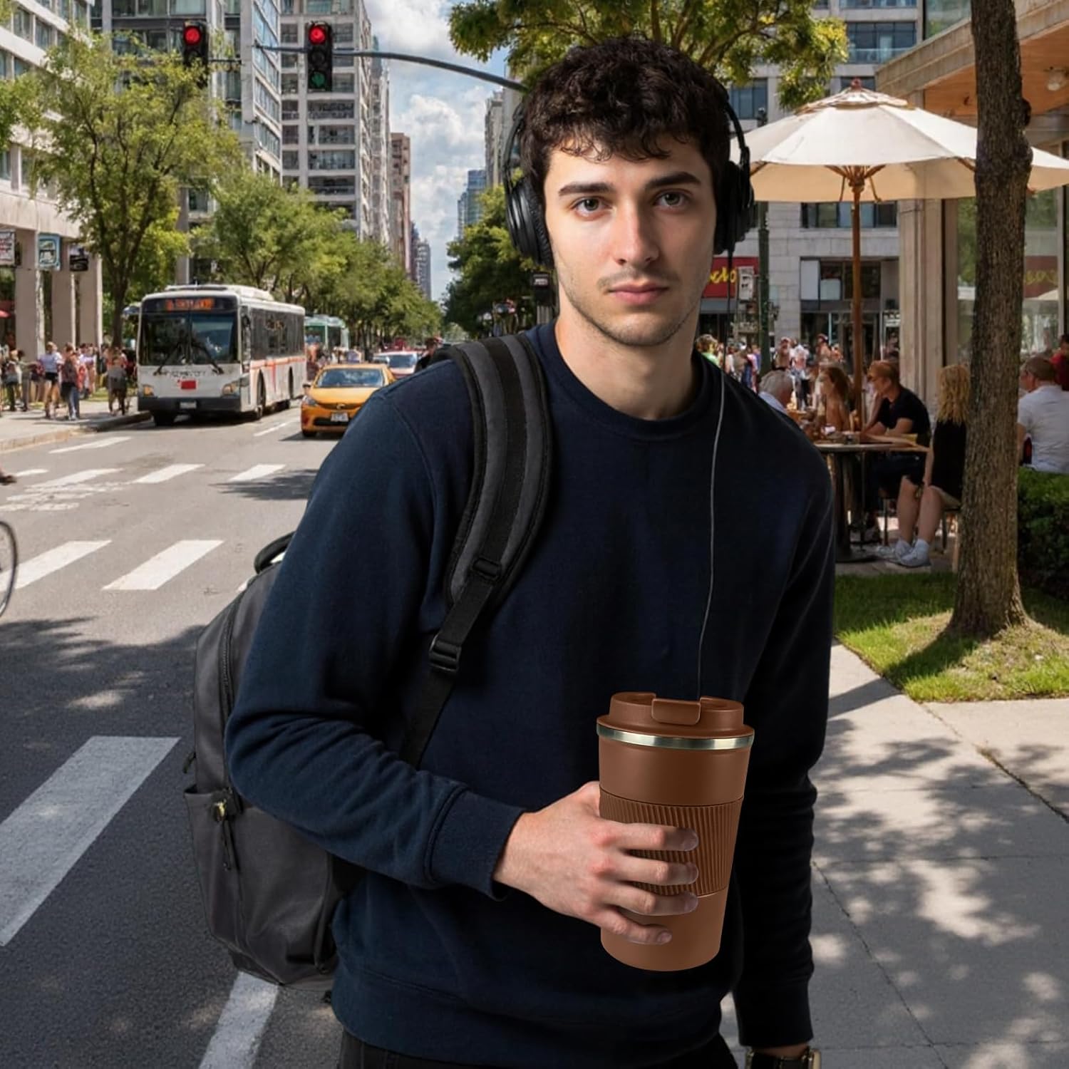 YINBAOGE Insulated Travel Coffee Mug Spill Proof Leak Proof Pobtable To Go Camping Stainless Steel Coffee Tumbler Reusable Coffee Cups with Lids Thermos for Hot and Cold Drink (Brown, 12 OZ)