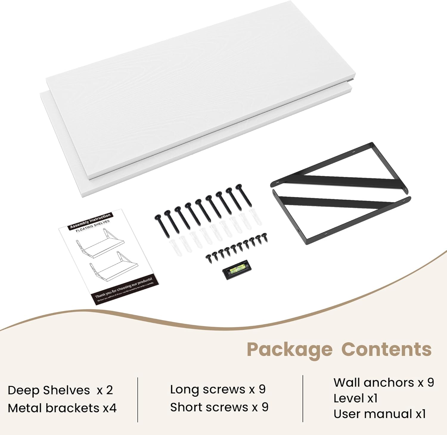 - Easy to assemble: Easy to install in minutes with the installation manual. In addition, when you mount our deep floating shelves firmly on the wall, they can hold up to 55 lbs of weight.